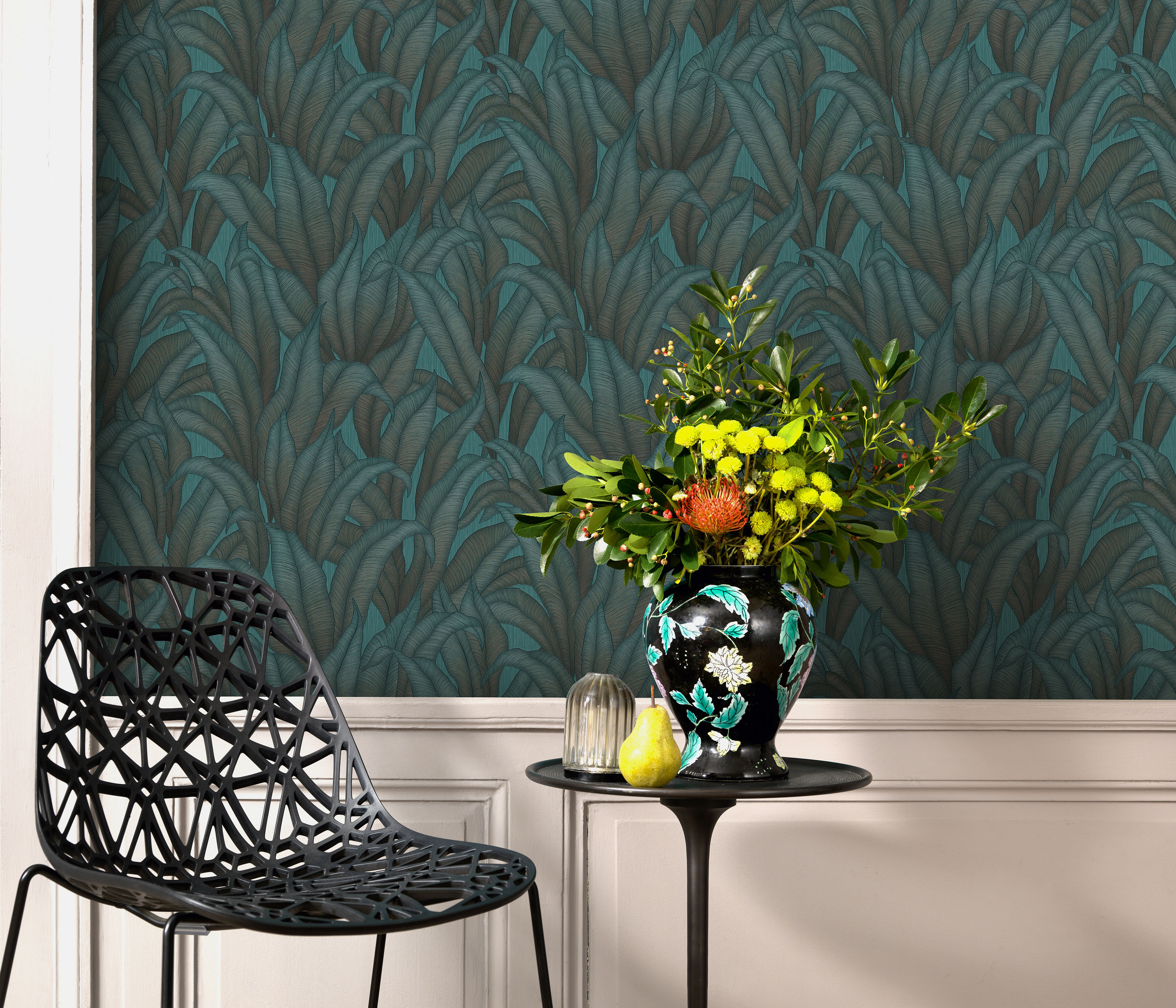 Powyższa tapeta z motywem roślinnym idealnie wkomponuje się w aranżację nowoczesnego wnętrza. Wzór przedstawiający liście w odcieniu zieleni, z dodatkiem brązu i czerni z pewnością nada pomieszczeniu eleganckiego i modnego wyrazu. Struktura tapety przypomina tkaninę, subtelny perłowy połysk liści sprawia, że tapeta delikatnie się mieni, co tworzy piękne refleksy na ścianie. Zastosowanie tapety jako dekoracji jednej ściany i zestawienie jej z innymi, pasującymi do niej tapetami z kolekcji pozwoli uzyskać spójność w wystroju wnętrza. Podłoże tapety flizelinowe, zmywalne. Produkt pochodzi z kolekcji "Fashion for Walls 4", którą przy współpracy z producentem Erismann zaprojektował Guido Maria Kretchmer. Tapeta jest dostępna również w rozmiarze: 1,06 m x 10,00 mb. - 12181-19.