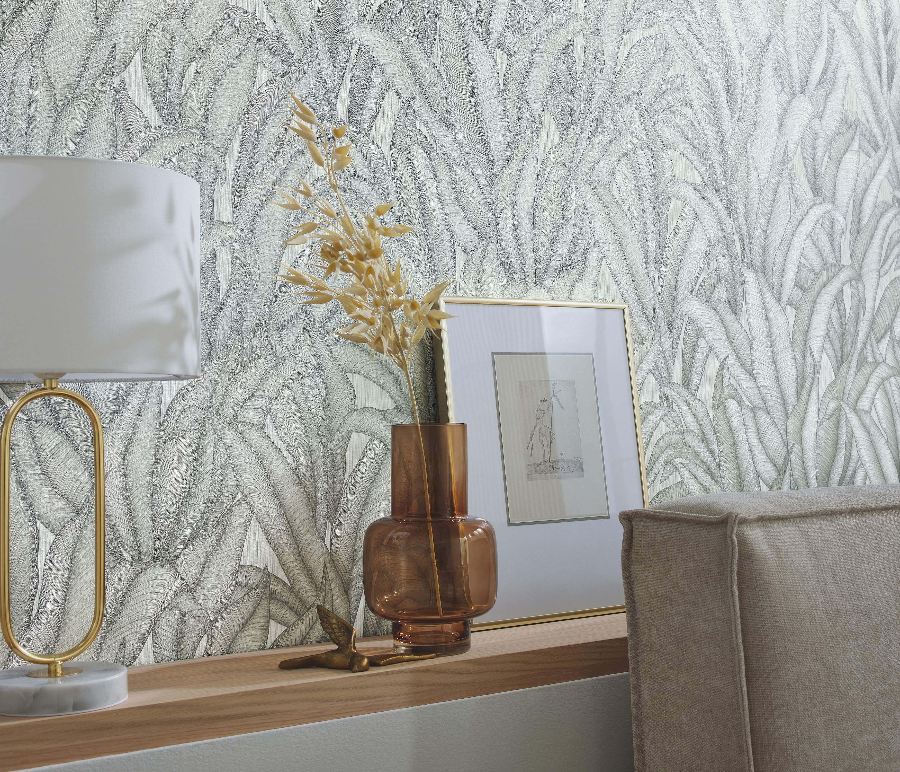 Powyższa tapeta z motywem roślinnym idealnie wkomponuje się w aranżację nowoczesnego wnętrza. Wzór przedstawiający liście w odcieniach szarości na białym tle z pewnością nada pomieszczeniu eleganckiego i modnego wyrazu. Struktura tapety przypomina tkaninę, subtelny połysk powierzchni sprawia, że tapeta delikatnie się mieni, co tworzy piękne refleksy na ścianie. Zastosowanie tapety jako dekoracji jednej ściany i zestawienie jej z innymi, pasującymi do niej tapetami z kolekcji pozwoli uzyskać spójność w wystroju wnętrza. Podłoże tapety flizelinowe, zmywalne. Produkt pochodzi z kolekcji "Fashion for Walls 4", którą przy współpracy z producentem Erismann zaprojektował Guido Maria Kretchmer. Tapeta jest dostępna również w rozmiarze 1,06 m x 10,00 mb. - 12181-31.