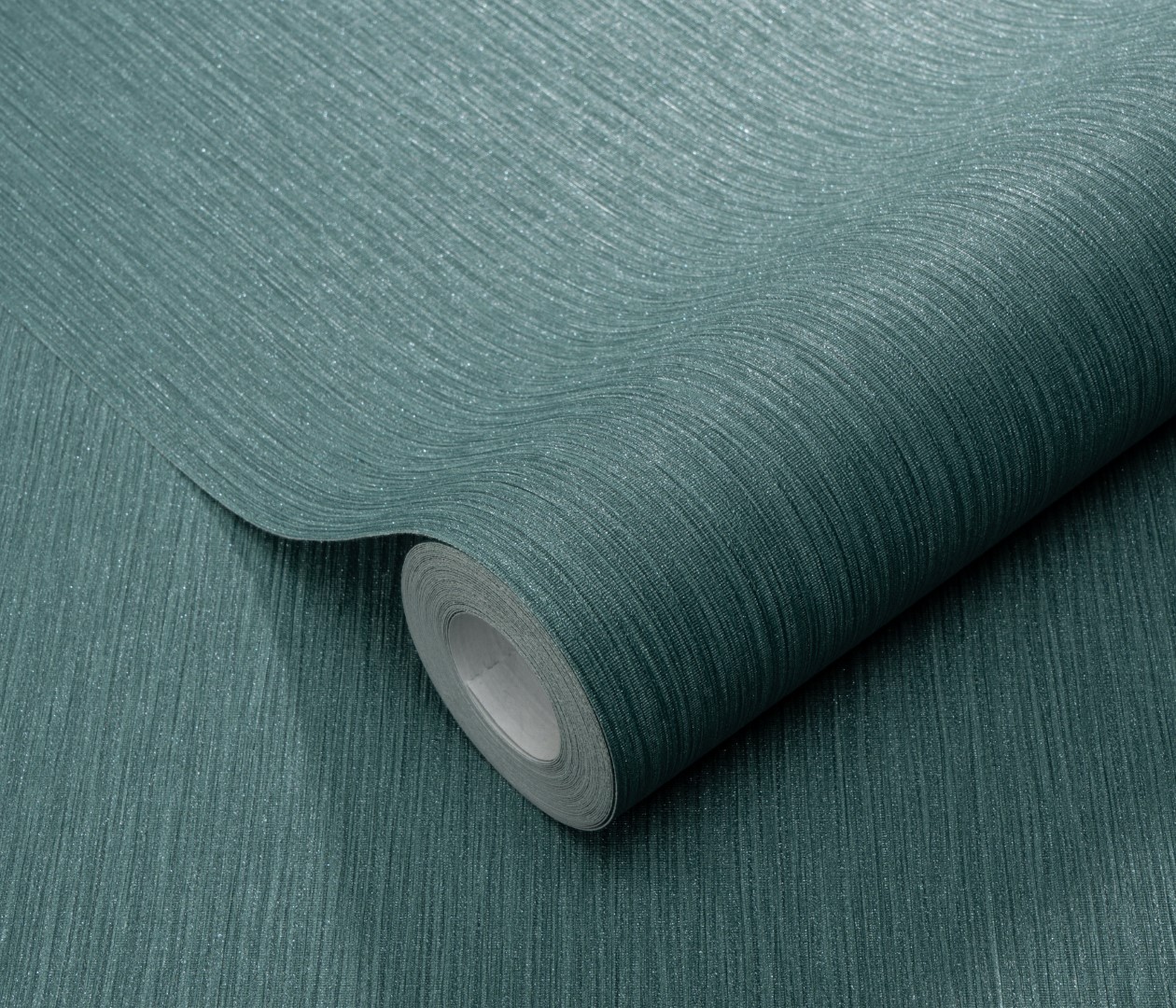 Tapeta ścienna o strukturze prążkowanej tkaniny w głębokim, ciemnozielonym odcieniu, połyskująca srebrnym, brokatowym pyłkiem. Będzie współgrać z różnymi stylami aranżacyjnymi i świetnie pasuje do każdego pomieszczenia. Może tworzyć modne zestawienie z innymi tapetami, czy też stanowić samodzielną dekorację całego pomieszczenia. Tapeta pochodzi z kolekcji "Fashion for Walls 4", którą przy współpracy z producentem Erismann zaprojektował Guido Maria Kretchmer. Podłoże tapety flizelinowe, zmywalne.