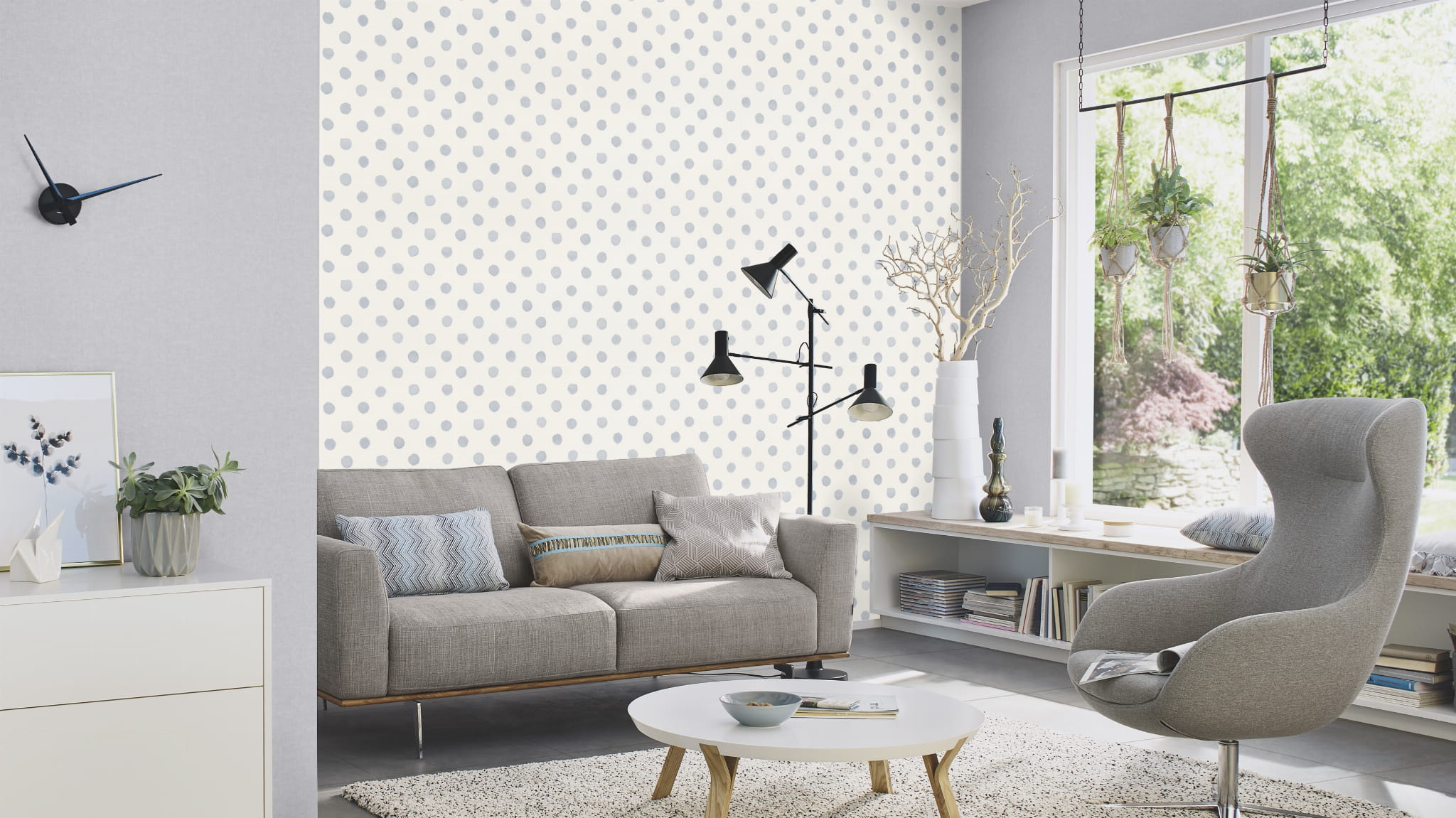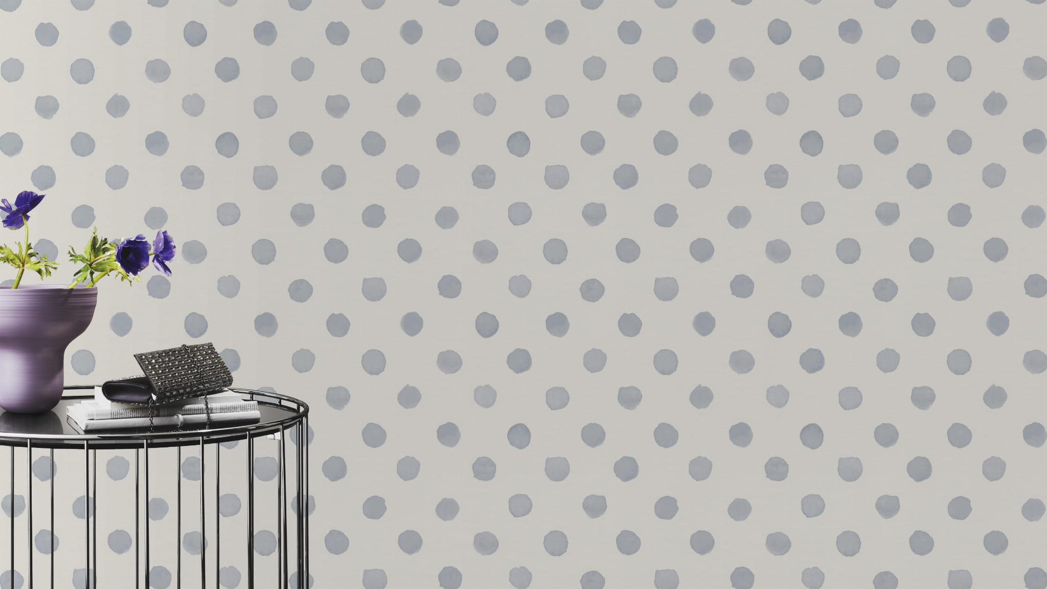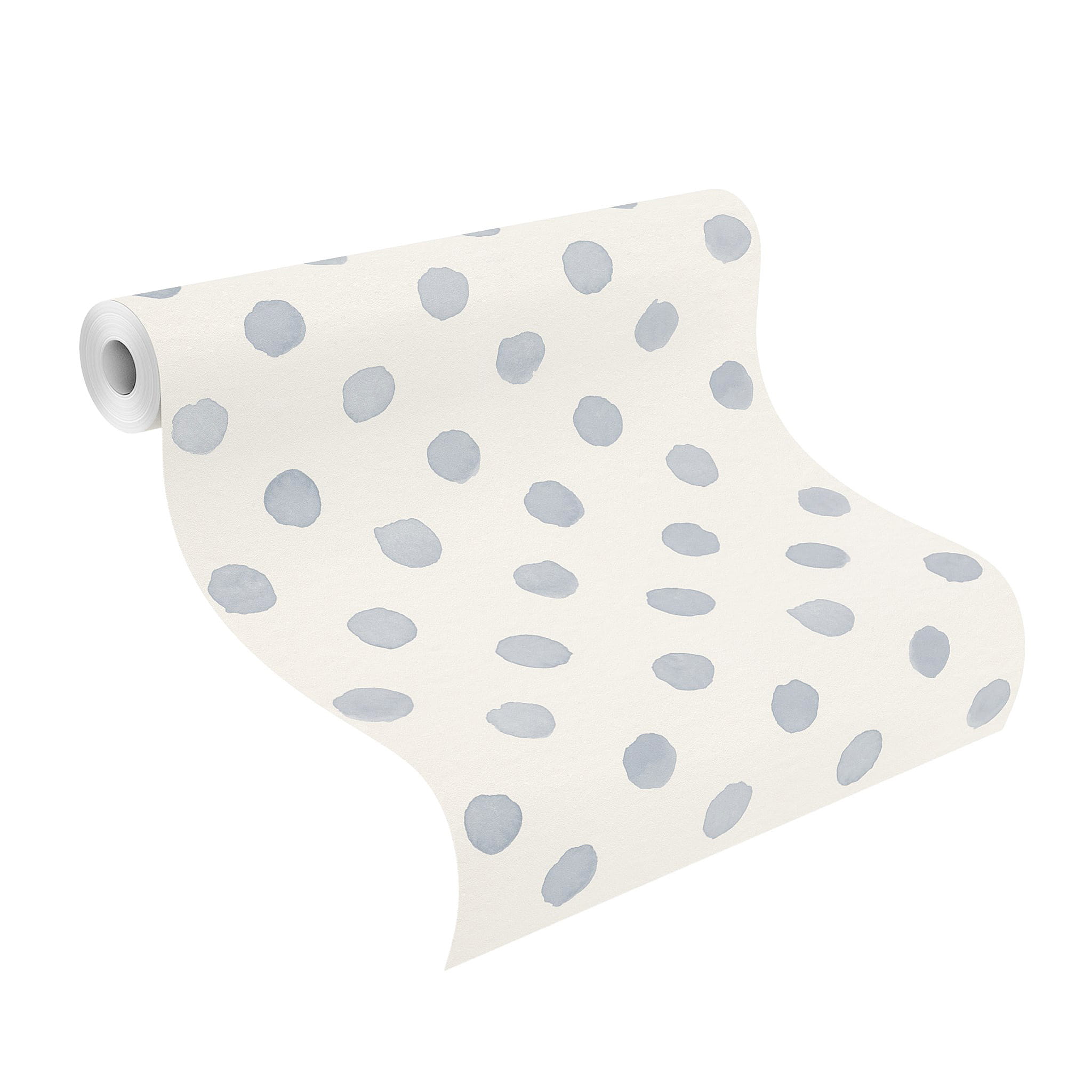 Tapeta o gładkiej strukturze i matowym wykończeniu. Motywem są duże i nieregularne grochy malowane akwarelą. Wzór w odcieniu chłodnego, gołębiego błękitu wypełnia białe tło. Projekt pochodzi z dziecięcych kolekcji producenta Rasch - "Kids World" i "Bambino XIX", producenta Rasch. Modnie odmieni nie tylko dziecięcą przestrzeń ale doskonale sprawdzi się również w aranżacji nowocześnie urządzonego salonu, jadalni, sypialni a także młodzieżowego wnętrza. Świetnie sprawdzi się jako dekoracja jednej ściany, tworząc modne zestawienie z innymi tapetami z kolekcji. Podłoże tapety flizelinowe, ekologiczne, wolne od polichlorku winylu.