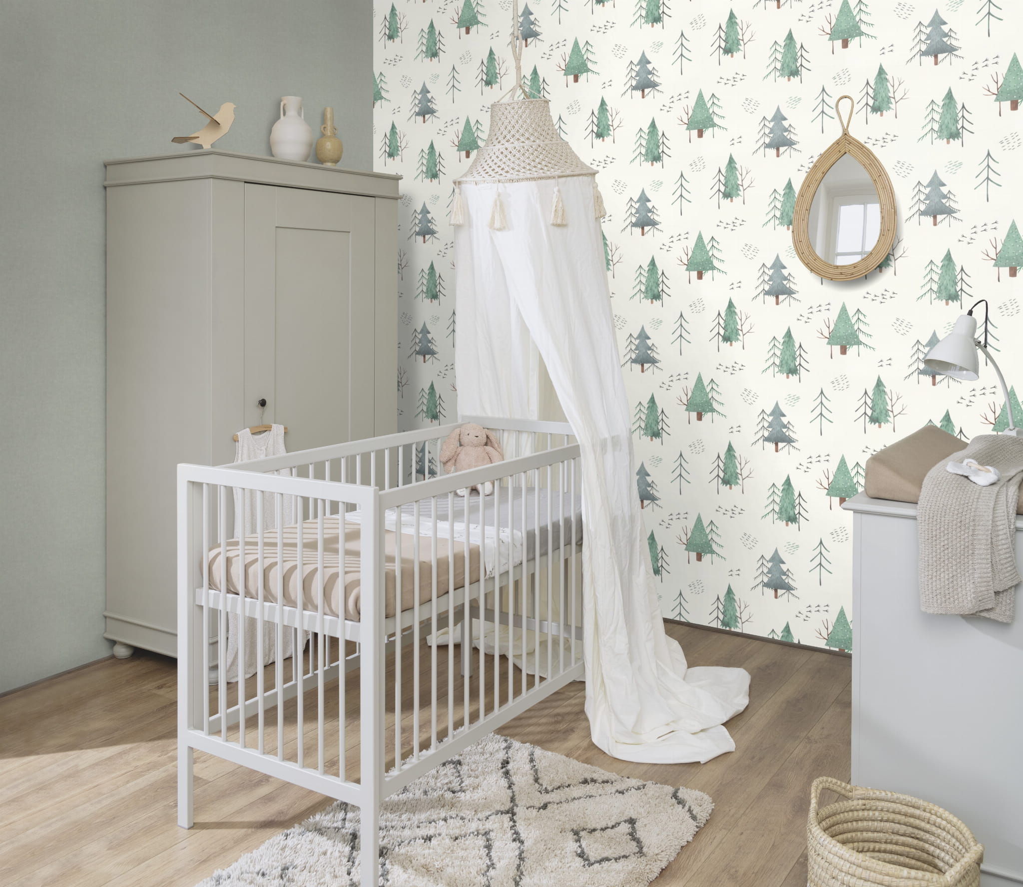 Tapeta ścienna z kolekcji "Kids World" i "Bambino XIX", producenta Rasch. Tapeta o wyglądzie płóciennej tkaniny w delikatnym odcieniu zieleni złamanej kroplą szarości. Kolor jest niejednolity, z delikatnymi, jaśniejszymi przetarciami. Struktura tapety jest gładka i ma matowe wykończenie. Z powodzeniem może stanowić samodzielną dekorację w całym pomieszczeniu, jak i tworzyć modne zestawienie z innymi tapetami z kolekcji. Będzie współgrać z wieloma stylami aranżacyjnymi i pasuje do każdego pomieszczenia. Podłoże tapety flizelinowe, zmywalne w stopniu dobrym, wolne od PCV - ekologiczne.