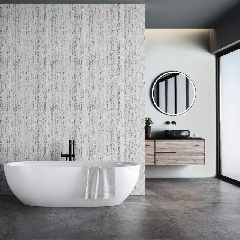 Prezentowana tapeta ścienna o wzorze inspirowanym strukturą trawertynu wprowadzi do wnętrza surowy i naturalny charakter. Z jej pomocą można uzyskać efekt przypominający kamień, nadając pomieszczeniu elegancji i wyjątkowego stylu. Wzór jest subtelny, ale wyrazisty, dzięki nieregularnym wzorom i cieniowaniu. Kolorystyka utrzymana w tonacji bieli i ciemnej szarości sprawia, że tapeta jest wszechstronna i łatwo komponuje się z różnymi stylami wnętrzarskimi. Jest idealna dla miłośników stylu industrialnego, nowoczesnego, skandynawskiego oraz Japandi, a także dla tych, którzy poszukują nietuzinkowych rozwiązań dekoracyjnych. Tapeta będzie się świetnie prezentować z meblami o prostych, surowych kształtach. Drewniane elementy ocieplą surowość kamienia i nadadzą wnętrzu przytulności a metalowe akcenty, jak czarne lub stalowe ramy mebli, jak również industrialne lampy, podkreślą industrialny charakter wnętrza. Struktura tapety jest delikatnie tłoczona i wyczuwalnie szorstka w dotyku. Wykończenie powierzchni na pierwszy rzut oka wydaje się być matowe, jednak najjaśniejszy, kolor delikatnie odbija mocniejsze światło. Tapeta pochodzi z ekskluzywnej kolekcji "Travertino", niemieckiego producenta Marburg.
