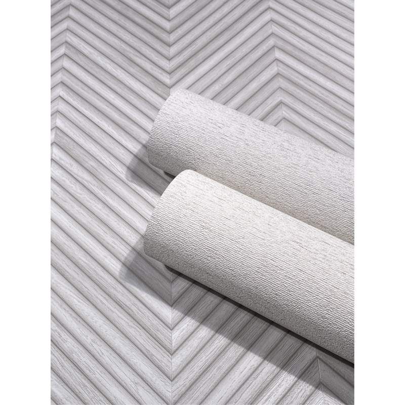 Prezentowana tapeta ścienna w oryginalny sposób łączy fakturę drewna z motywem jodełki. Jej kolorystyka oscyluje wokół rozbielonych, jasnoszarych tonacji, które nadają jej uniwersalny i przytulny charakter. Delikatnie tłoczona struktura tapety wiernie odzwierciedla drewnianą powierzchnię. Wykończenie tapety na pierwszy rzut oka wydaje się być matowe, jednak jej powierzchnia delikatnie odbija światło, co wzmacnia realizm wzoru. Tapeta świetnie pasuje do wnętrz urządzonych w stylu nowoczesnym, skandynawskim, japandi czy minimalistycznym. Doskonale sprawdzi się zarówno w salonie, jak i w sypialni, przedpokoju czy domowym biurze. Wzór w jodełkę optycznie wydłuży ścianę i doda jej głębi, co może korzystnie wpłynąć na proporcje pomieszczenia. Dzięki neutralnym barwom będzie doskonałym tłem dla różnych aranżacji kolorystycznych, a przy tym nada wnętrzu przytulny i harmonijny klimat. Przypadnie do gustu osobom, które szukają wyważonego połączenia elegancji i przytulności. Jest idealnym wyborem dla tych, którzy lubią wnętrza inspirowane naturą, a także dla osób ceniących prostotę z nutą oryginalności. Tapeta pochodzi z ekskluzywnej kolekcji "Travertino", niemieckiego producenta Marburg.