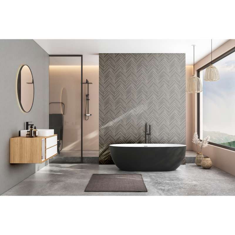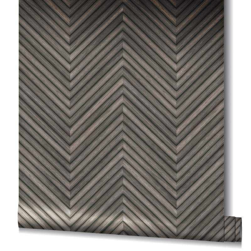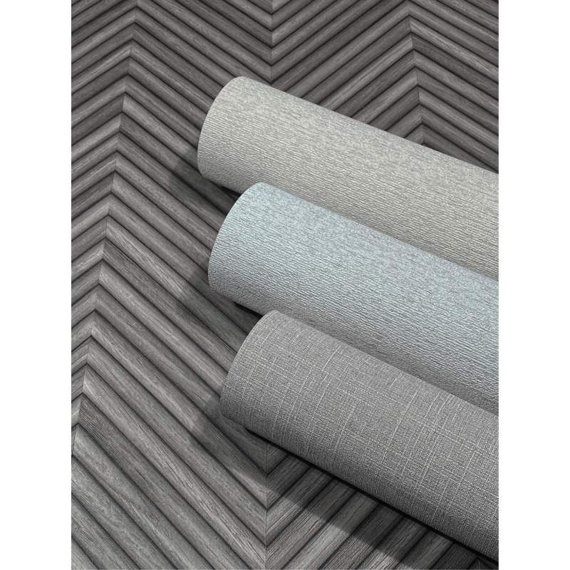 Prezentowana tapeta ścienna w oryginalny sposób łączy fakturę drewna z motywem jodełki. Jej kolorystyka oscyluje wokół chłodnych, ciemnoszarych tonacji, które nadają jej uniwersalny i i nieco surowy charakter. Delikatnie tłoczona struktura tapety wiernie odzwierciedla drewnianą powierzchnię. Wykończenie tapety na pierwszy rzut oka wydaje się być matowe, jednak jej powierzchnia delikatnie odbija światło, co wzmacnia realizm wzoru. Tapeta świetnie pasuje do wnętrz urządzonych w stylu nowoczesnym, skandynawskim, japandi czy minimalistycznym. Doskonale sprawdzi się zarówno w salonie, jak i w sypialni, przedpokoju czy domowym biurze. Wzór w jodełkę optycznie wydłuży ścianę i doda jej głębi, co może korzystnie wpłynąć na proporcje pomieszczenia. Dzięki neutralnym barwom będzie doskonałym tłem dla różnych aranżacji kolorystycznych, a przy tym nada wnętrzu przytulny i harmonijny klimat. Przypadnie do gustu osobom, które szukają wyważonego połączenia elegancji i przytulności. Jest idealnym wyborem dla tych, którzy lubią wnętrza inspirowane naturą, a także dla osób ceniących prostotę z nutą oryginalności. Tapeta pochodzi z ekskluzywnej kolekcji "Travertino", niemieckiego producenta Marburg.