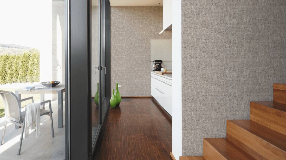 Tapeta jest matowa w odcieniach beżowego, brązowego, czarnego oraz białego.