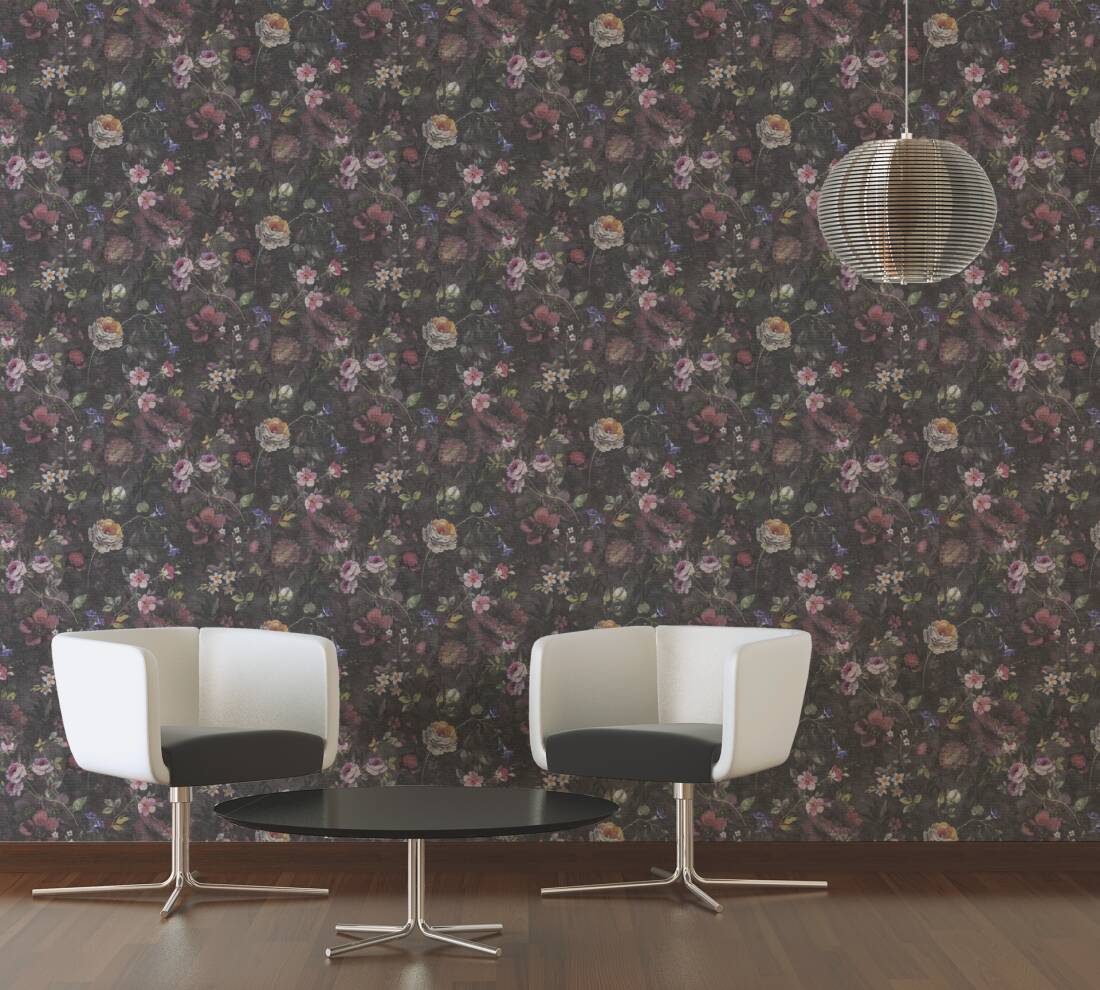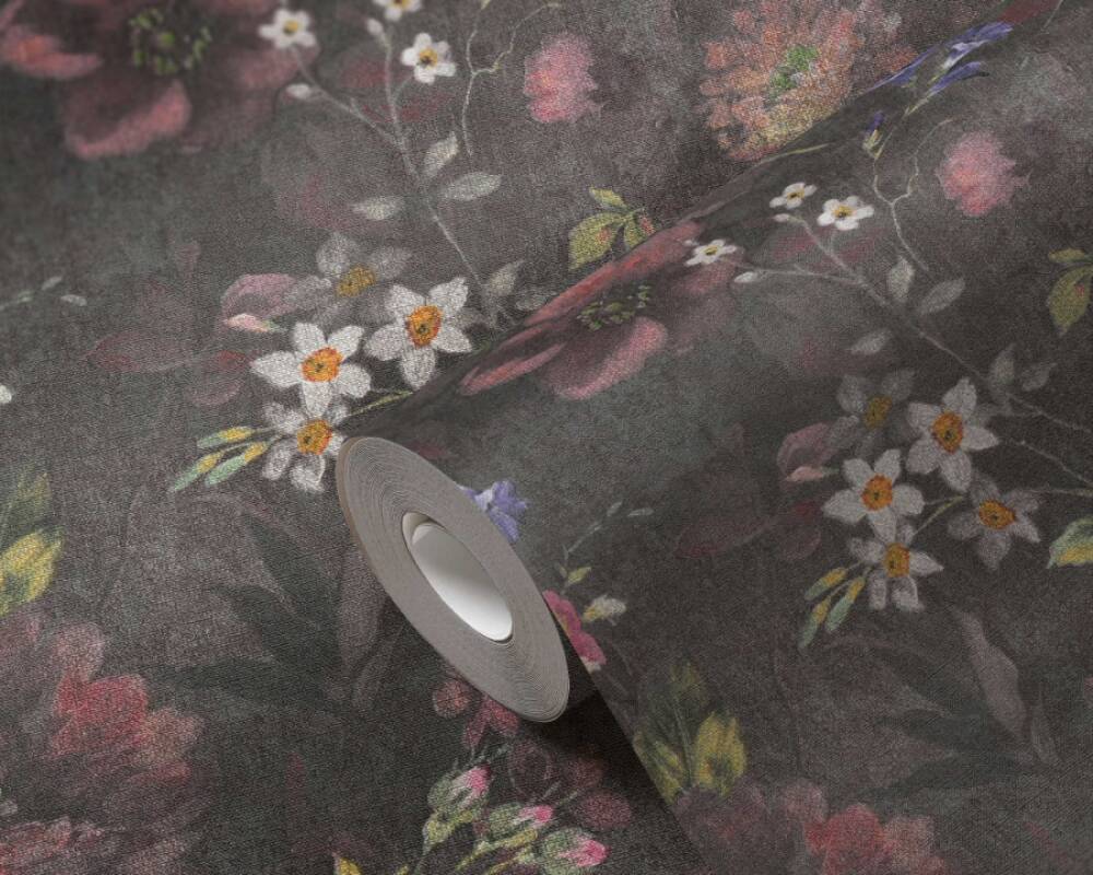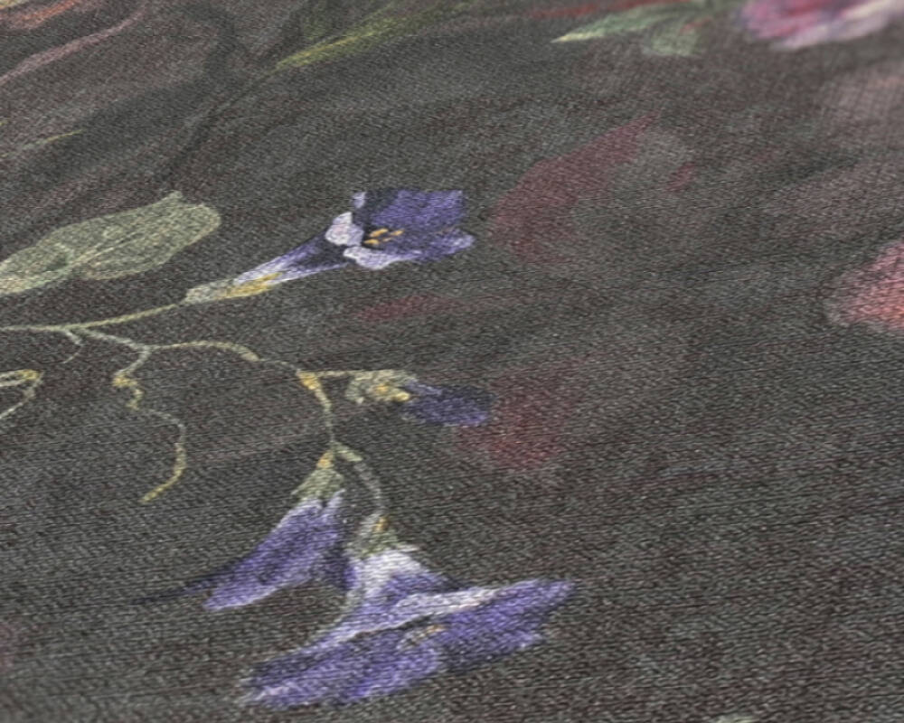 Motyw na tapecie przedstawia różnorodnie rozproszone, polne kwiaty z ich ulistnieniem. Na cieniowanym, grafitowym tle, pięknie prezentują się dzikie zioła i kwiaty, w pastelowych odcieniach: różu, fioletu, bieli, żółtego, ciepłego beżu i szarości. Delikatne kontury kwiatów i gałązek, wyglądają, jak zmysłowe muśnięcia pędzlem, tworząc piękną kompozycję namalowanej wiosennej łąki. Matowa powierzchnia dodaje jej uroku, a delikatna w dotyku struktura płótna, dodatkowo podkreśla, jej estetyczne walory. Tapeta w kwiaty to doskonały wybór dla miłośników natury. Sprawdzi się, jako samodzielna dekoracja ścian lub połączona z szeroką gamą wzorów z kolekcji D’eco Natural Living, stworzy wyjątkowo elegancki wystrój do salonu, do jadalni, do sypialni, gabinetu, czy też do pokoju młodzieżowego, nadając im niepowtarzalny i klimatyczny urok. Tapeta flizelinowa, charakteryzuje się dobrą odpornością na zmywanie, wierzch można bardzo delikatnie przecierać ściereczką. Innowacyjna i bezpieczna dla środowiska technika produkcji. Tapeta wolna od PVC.