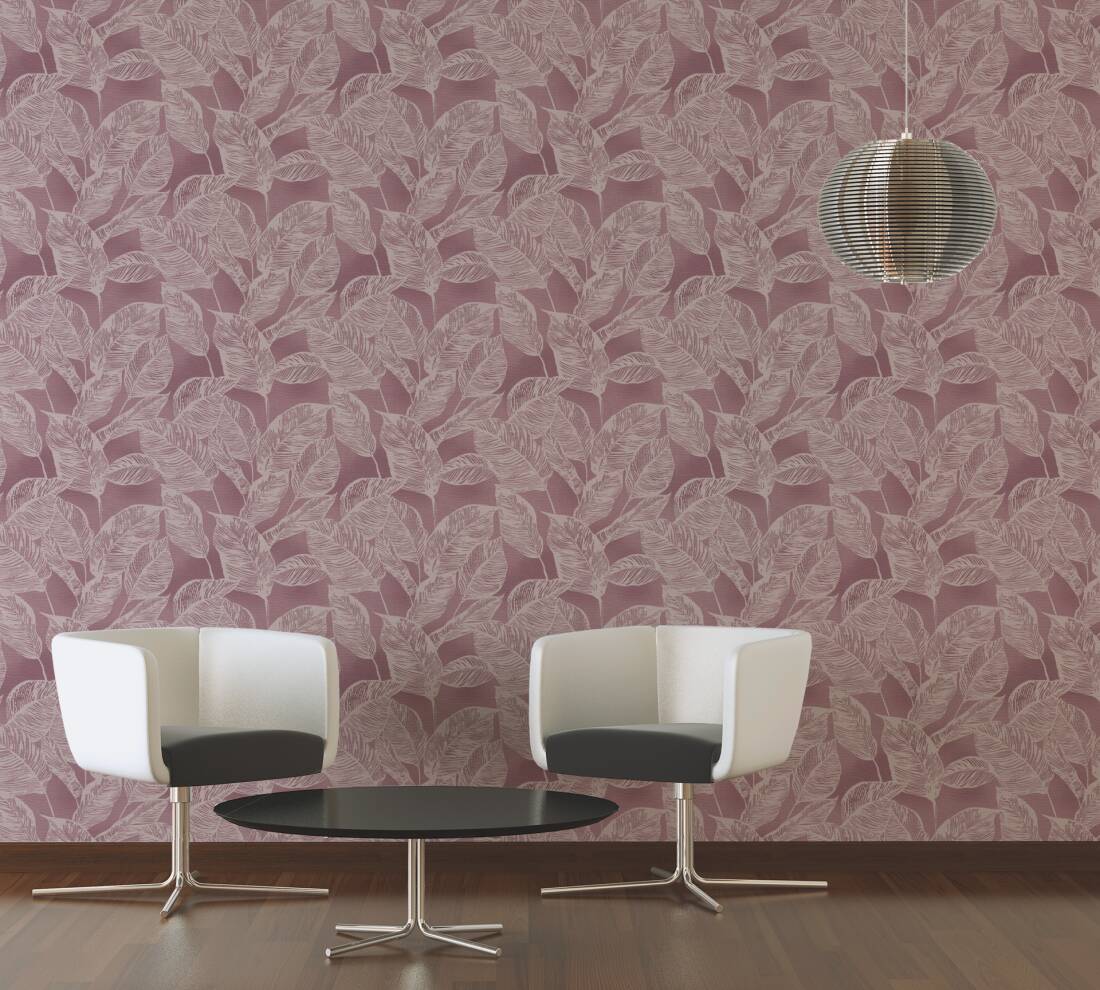 Tapeta ścienna z bujnym i okazałym motywem liści bananowca, to unikalna propozycja do dekoracji ścian Twojego pomieszczenia. Nieregularnie rozmieszczone liście, będą oryginalnym akcentem przy projektowaniu aranżacji. Wzór doskonale dopasuje się do wnętrz urządzonych w stylu tropikalnym, przywołując wspomnienia z dalekich egzotycznych wypraw. W połączeniu z prostymi i rustykalnymi dodatkami, stworzy kojący klimat, kojarzący się z naturą i odpoczynkiem. Struktura lnu zaprezentowana na całej powierzchni tapety, dodatkowo podkreśla jej estetyczne walory. Kolorystyka tapety jest spokojna i stonowana. Na jasnofioletowych blaszkach liścia, pięknie prezentują się fioletowo-śliwkowe żyłki, których odcień, jest taki sam, jak wypełnienie cieniowanego tła tapety. Sprawdzi się, jako samodzielna dekoracja ścian lub połączona z szeroką gamą wzorów z kolekcji D’eco Natural Living, stworzy wyjątkowo elegancki wystrój do salonu, do jadalni, do sypialni, gabinetu, czy też do pokoju młodzieżowego, nadając im niepowtarzalny i klimatyczny urok. Tapeta flizelinowa, charakteryzuje się dobrą odpornością na zmywanie, wierzch można bardzo delikatnie przecierać ściereczką. Innowacyjna i bezpieczna dla środowiska technika produkcji. Tapeta wolna od PVC.