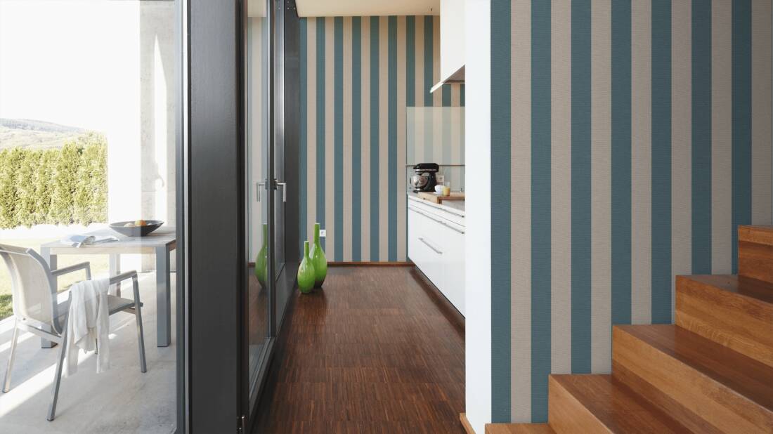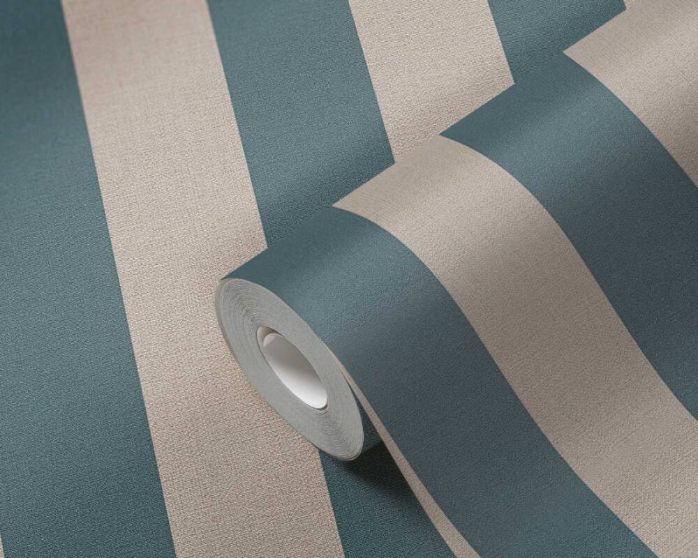 Motyw tapety tworzą regularnie rozmieszczone, matowe pasy o jednakowej szerokości. Kolorystyka na tapecie jest dość różnorodna i scala ze sobą dwa odcienie – beżowy i ciemny turkusowy. Tapeta w pasy to doskonały pomysł na elegancką aranżację pomieszczenia. Pasiasty motyw skomponuje się zarówno z klasycznym, jak i nowoczesnym designem wystroju wnętrz. Ponadto, świetnie poprawi ich optyczne proporcje. Struktura lnu zaprezentowana na całej powierzchni tapety, dodatkowo podkreśla jej estetyczne walory. Sprawdzi się, jako samodzielna dekoracja ścian lub połączona z szeroką gamą wzorów z kolekcji D’eco Natural Living, stworzy wyjątkowo elegancki wystrój do salonu, do jadalni, do sypialni, gabinetu, czy też do pokoju młodzieżowego, nadając im niepowtarzalny i klimatyczny urok. Tapeta flizelinowa, charakteryzuje się dobrą odpornością na zmywanie, wierzch można bardzo delikatnie przecierać ściereczką. Innowacyjna i bezpieczna dla środowiska technika produkcji. Tapeta wolna od PVC.