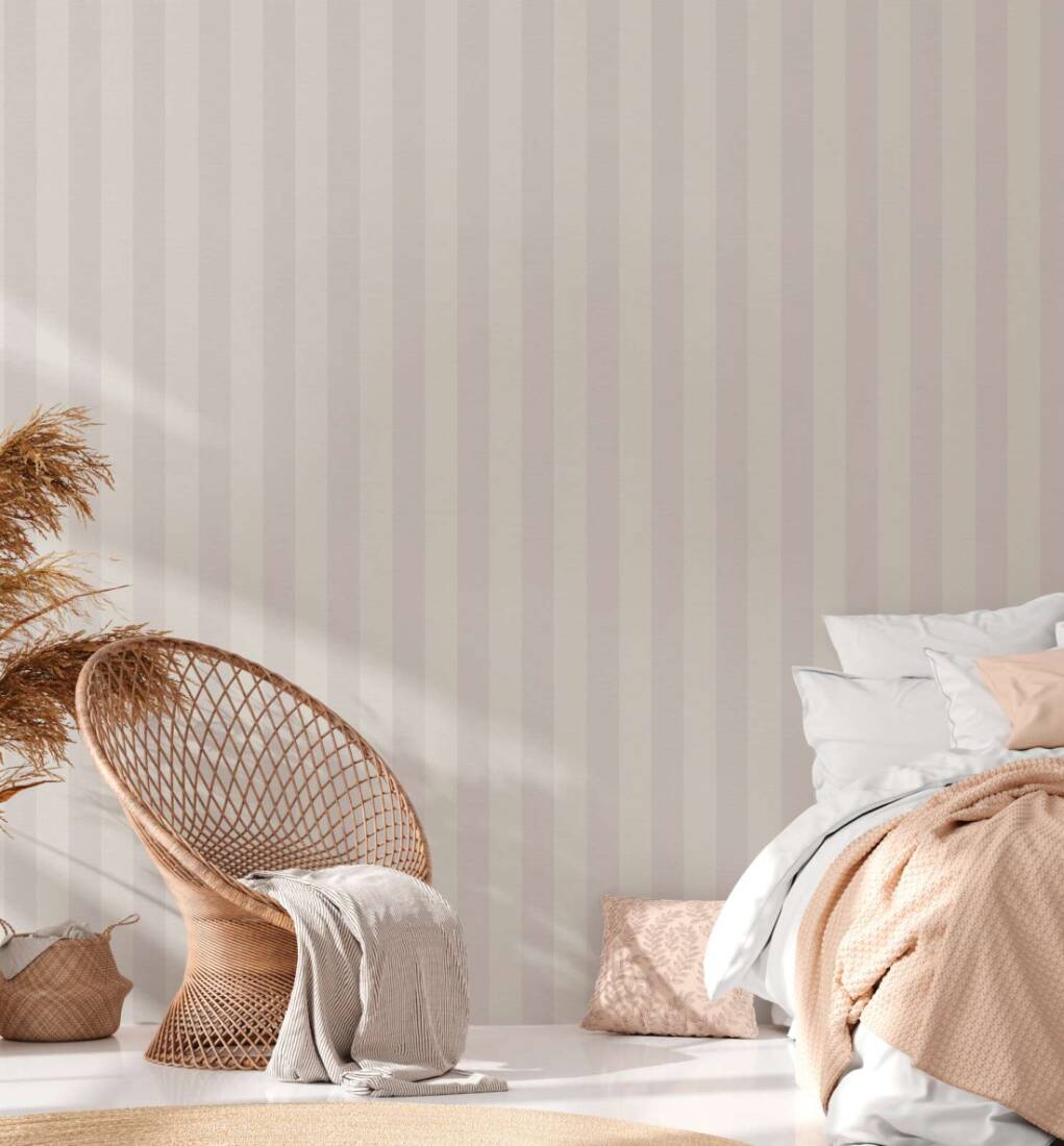 Motyw tapety tworzą regularnie rozmieszczone, matowe pasy o jednakowej szerokości. Kolorystyka na tapecie jest stonowana i scala ze sobą dwa odcienie – biały i jasnopopielaty. Tapeta w pasy to doskonały pomysł na elegancką aranżację pomieszczenia. Pasiasty motyw skomponuje się zarówno z klasycznym, jak i nowoczesnym designem wystroju wnętrz. Ponadto, świetnie poprawi ich optyczne proporcje. Struktura lnu zaprezentowana na całej powierzchni tapety, dodatkowo podkreśla jej estetyczne walory. Sprawdzi się, jako samodzielna dekoracja ścian lub połączona z szeroką gamą wzorów z kolekcji D’eco Natural Living, stworzy wyjątkowo elegancki wystrój do salonu, do jadalni, do sypialni, gabinetu, czy też do pokoju młodzieżowego, nadając im niepowtarzalny i klimatyczny urok. Tapeta flizelinowa, charakteryzuje się dobrą odpornością na zmywanie, wierzch można bardzo delikatnie przecierać ściereczką. Innowacyjna i bezpieczna dla środowiska technika produkcji. Tapeta wolna od PVC.