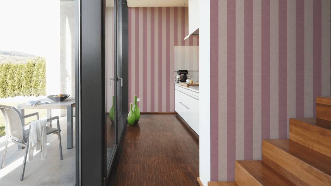 Motyw tapety tworzą regularnie rozmieszczone, matowe pasy o jednakowej szerokości. Kolorystyka na tapecie jest dość różnorodna i scala ze sobą dwa odcienie – jasny fioletowy i fioletowo-śliwkowy. Tapeta w pasy to doskonały pomysł na elegancką aranżację pomieszczenia. Pasiasty motyw skomponuje się zarówno z klasycznym, jak i nowoczesnym designem wystroju wnętrz. Ponadto, świetnie poprawi ich optyczne proporcje. Struktura lnu zaprezentowana na całej powierzchni tapety, dodatkowo podkreśla jej estetyczne walory. Sprawdzi się, jako samodzielna dekoracja ścian lub połączona z szeroką gamą wzorów z kolekcji D’eco Natural Living, stworzy wyjątkowo elegancki wystrój do salonu, do jadalni, do sypialni, gabinetu, czy też do pokoju młodzieżowego, nadając im niepowtarzalny i klimatyczny urok. Tapeta flizelinowa, charakteryzuje się dobrą odpornością na zmywanie, wierzch można bardzo delikatnie przecierać ściereczką. Innowacyjna i bezpieczna dla środowiska technika produkcji. Tapeta wolna od PVC.
