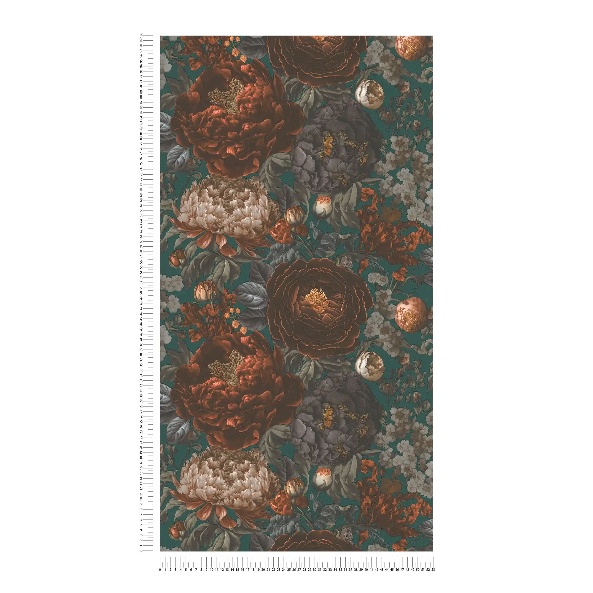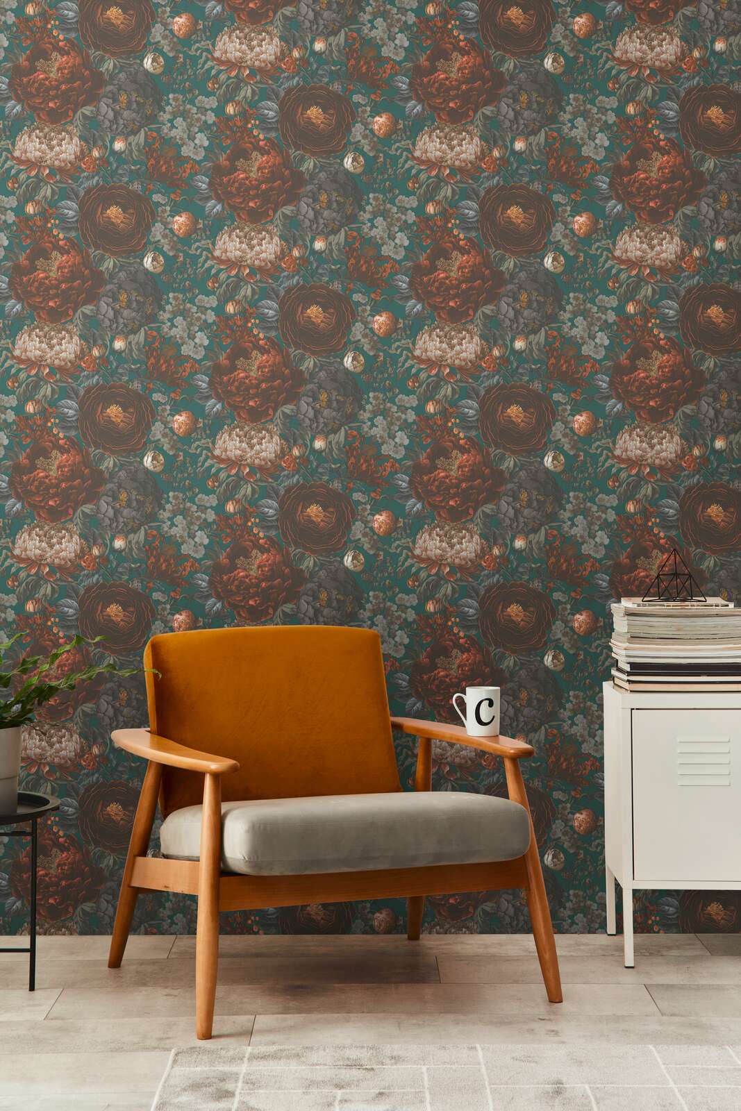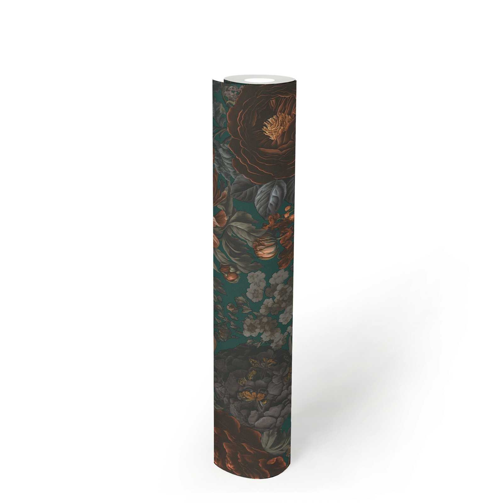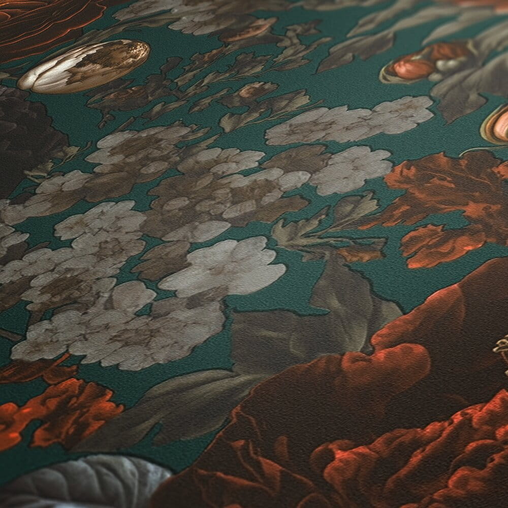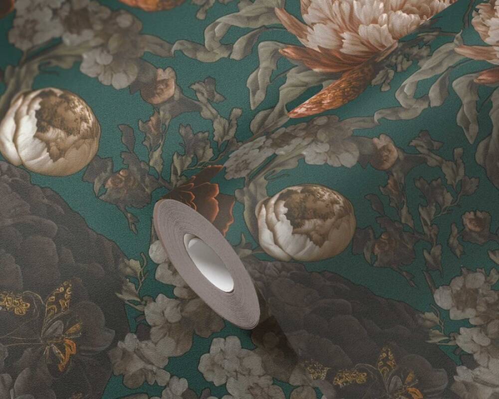 Ta elegancka tapeta ścienna przedstawia bogaty, kwiatowy wzór w stylu vintage, który zachwyca swoją głębią i bogactwem kolorów. Na nasyconym, ciemnozielonym tle widoczne są bujne piwonie, delikatne róże i inne kwiaty w odcieniach pomarańczowego wpadającego w brąz, beżu, kremu i szarości. Głębokie kolory i misternie przedstawione detale nadają kompozycji trójwymiarowy wygląd i niezwykle stylowy charakter. Struktura tapety jest gładka, minimalnie ziarnista a wykończenie matowe, co nadaje całości naturalnego wykończenia. Idealny wybór dla osób poszukujących unikatowej dekoracji wnętrza, która wprowadzi do pomieszczenia atmosferę przytulności, elegancji i klasy. Tapeta pięknie będzie prezentować się na ścianie w salonie, sypialni, czy biurze a także stylowych przestrzeniach komercyjnych, takich jak butiki czy restauracje. Świetnie odnajdzie się zarówno w nowoczesnych, jak i klasycznych aranżacjach wnętrz. Zestawienie wzoru z tapetami jednokolorowymi, które prezentujemy poniżej pozwoli uzyskać spójną i harmonijną przestrzeń. Prezentowana tapeta jest tapetą winylowa na flizelinie, odporną na szorowanie, dzięki czemu łatwą do utrzymania w czystości. Produkt pochodzi z katalogu "Michalsky 6", niemieckiego producenta A.S Creation.
