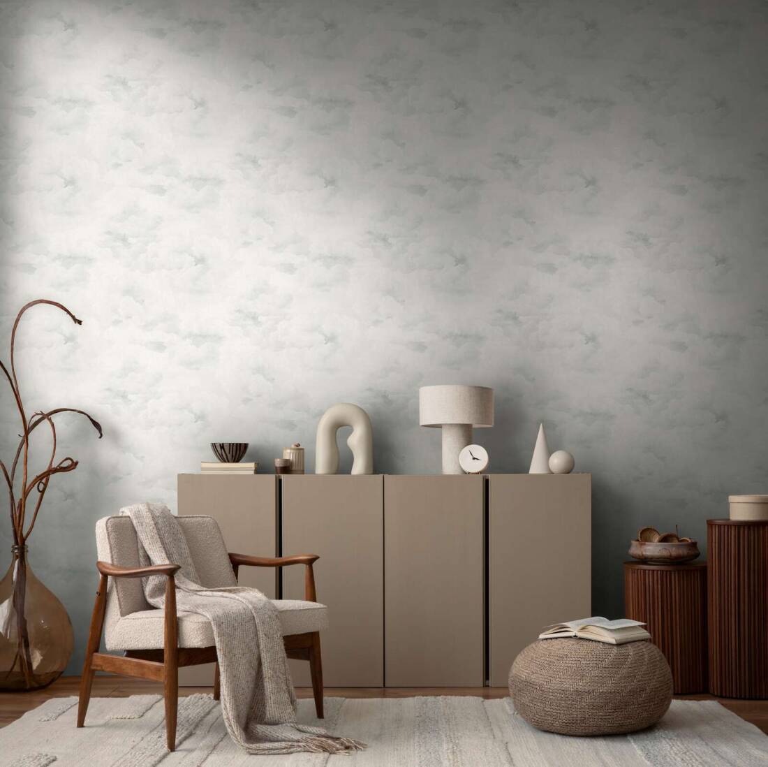 Powyższa tapeta ścienna z motywem miękkich, puszystych chmur na tle jasnego nieba to idealne rozwiązanie, aby wprowadzić do wnętrza poczucie przestrzeni, lekkości i spokoju. Realistycznie odwzorowane obłoki tworzą iluzję nieba, dzięki czemu wnętrze staje się bardziej przestronne i rozświetlone. Pastelowa paleta barw w delikatnej szarości i bieli wprowadza harmonię do wnętrza, tworząc idealne tło zarówno do sypialni, jak i salonu czy pokoju dziecięcego. Świetnie sprawdzi się również w miejscach, które mają sprzyjać atmosferze relaksu i wyciszenia, jak przestrzenie do medytacji czy gabinety. To doskonały wybór dla miłośników natury, którzy pragną wprowadzić do swojego wnętrza wyjątkową atmosferę. Delikatnie tłoczona struktura tapety przypomina tynk ścienny, faktura powierzchni jest wyczuwalnie szorstka w dotyku a wykończenia matowe. Zastosowanie tapety jako dekoracji jednej ściany i zestawienie jej z tapetami jednokolorowymi, które prezentujemy poniżej pozwoli uzyskać spójny i harmonijny wystrój wnętrza. Prezentowana tapeta jest tapetą winylowa na flizelinie, odporną na szorowanie, dzięki czemu łatwą do utrzymania w czystości. Produkt pochodzi z katalogu "Michalsky 6", niemieckiego producenta A.S Creation.