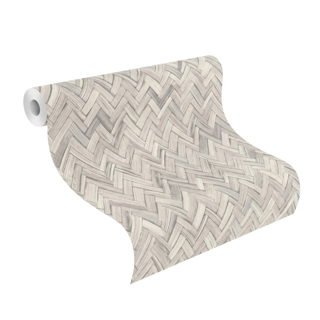 Prezentowana tapeta ścienna z kolekcji "Beachhouse", od Rasch prezentuje wzór w stylu plecionki przywodzący na myśl teksturę ręcznie tkanych mat bambusowych. Kompozycja utrzymana w delikatnej, jasnoszarej kolorystyce, która wniesie do wnętrza przytulny klimat i naturalny styl. Charakterystyczny wzór jodełki, który niezmiennie pozostaje modnym motywem idealnie wpisuje się w trendy inspirowane naturą i minimalistycznym designem. Struktura tapety jest gładka, wyczuwalnie chropowata w dotyku a wykończenie powierzchni matowe.