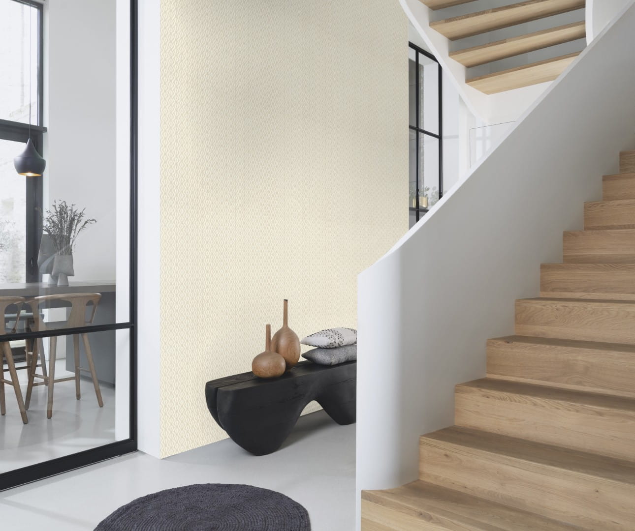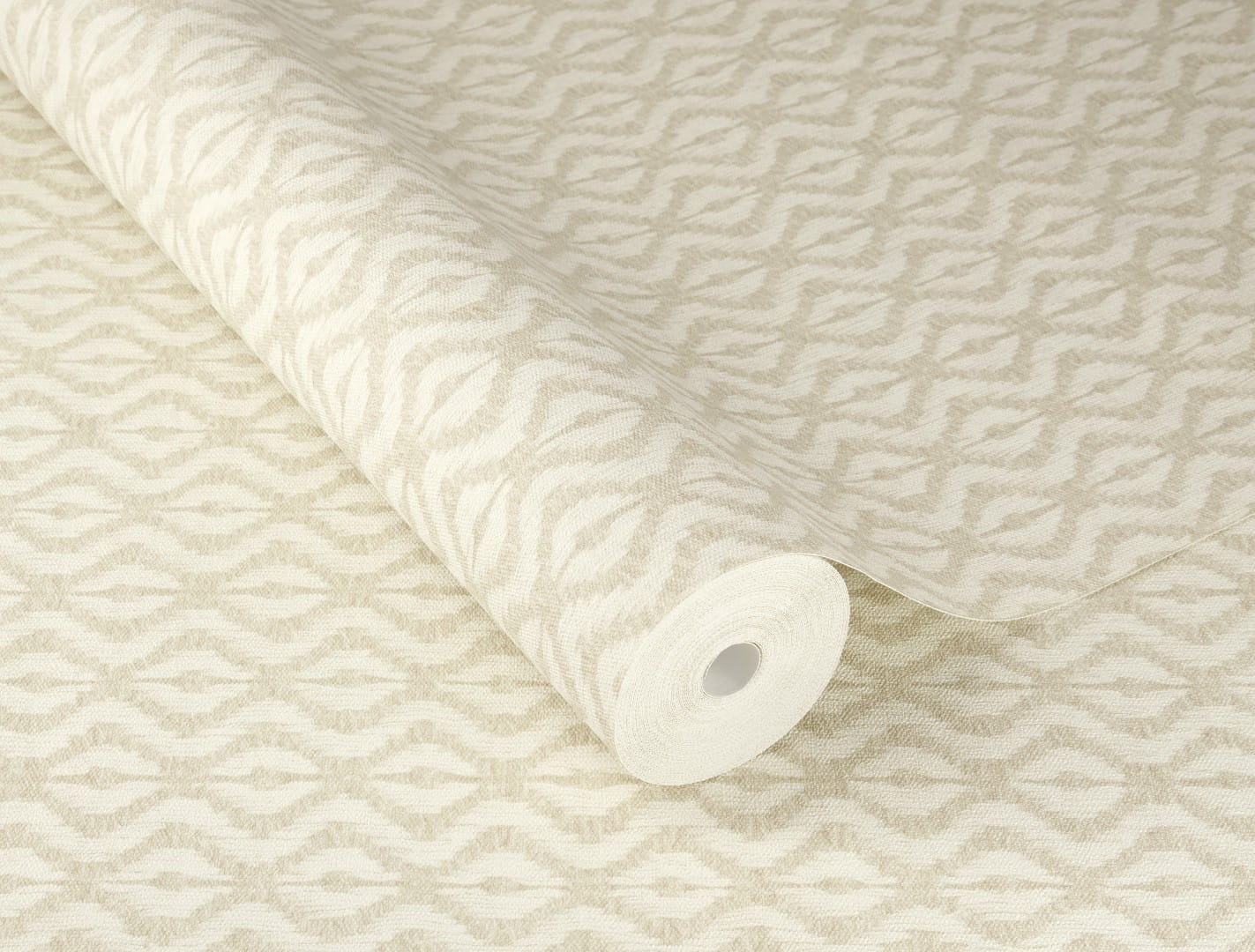 Prezentowana tapeta ścienna ze wzorem Ikat wprowadzi do wnętrza unikalne połączenie tradycyjnego rzemiosła i nowoczesnego designu. Popularny motyw, inspirowany techniką tkania i barwienia, charakteryzuje się geometrycznymi, lekko rozmytymi kształtami, które nadają tapecie subtelnej głębi i wyrazistości. Tapeta utrzymana w tonacji kremowej bieli i delikatnego, szarawego beżu. Dzięki strukturze przypominającej surowe płótno lnu o matowym wykończeniu, kompozycja ma naturalny i przytulny charakter.