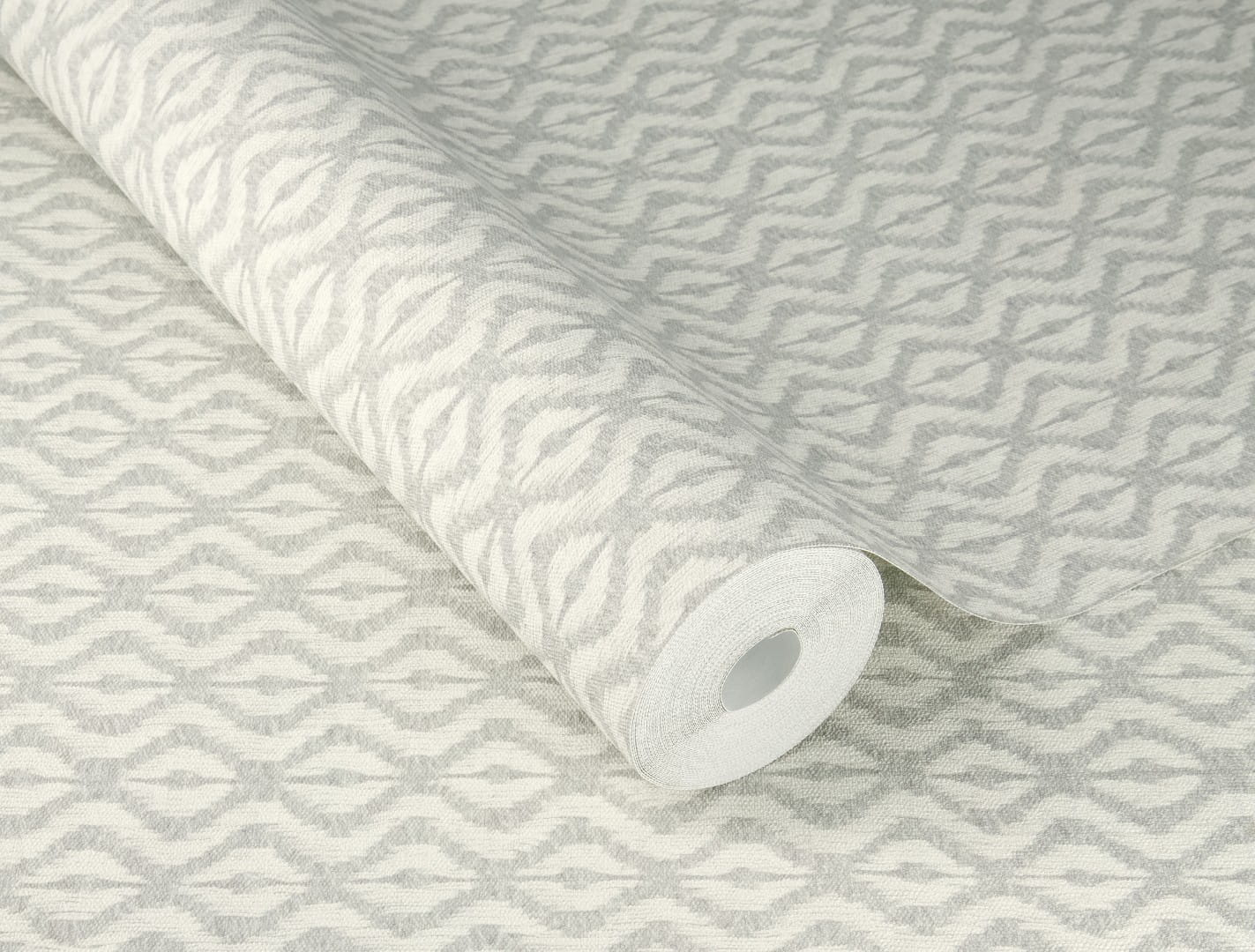 Prezentowana tapeta ścienna ze wzorem Ikat wprowadzi do wnętrza unikalne połączenie tradycyjnego rzemiosła i nowoczesnego designu. Popularny motyw, inspirowany techniką tkania i barwienia, charakteryzuje się geometrycznymi, lekko rozmytymi kształtami, które nadają tapecie subtelnej głębi i wyrazistości. Tapeta utrzymana w tonacji kremowej bieli i delikatnej, jasnej szarości. Dzięki strukturze przypominającej surowe płótno lnu o matowym wykończeniu, kompozycja ma naturalny i przytulny charakter.