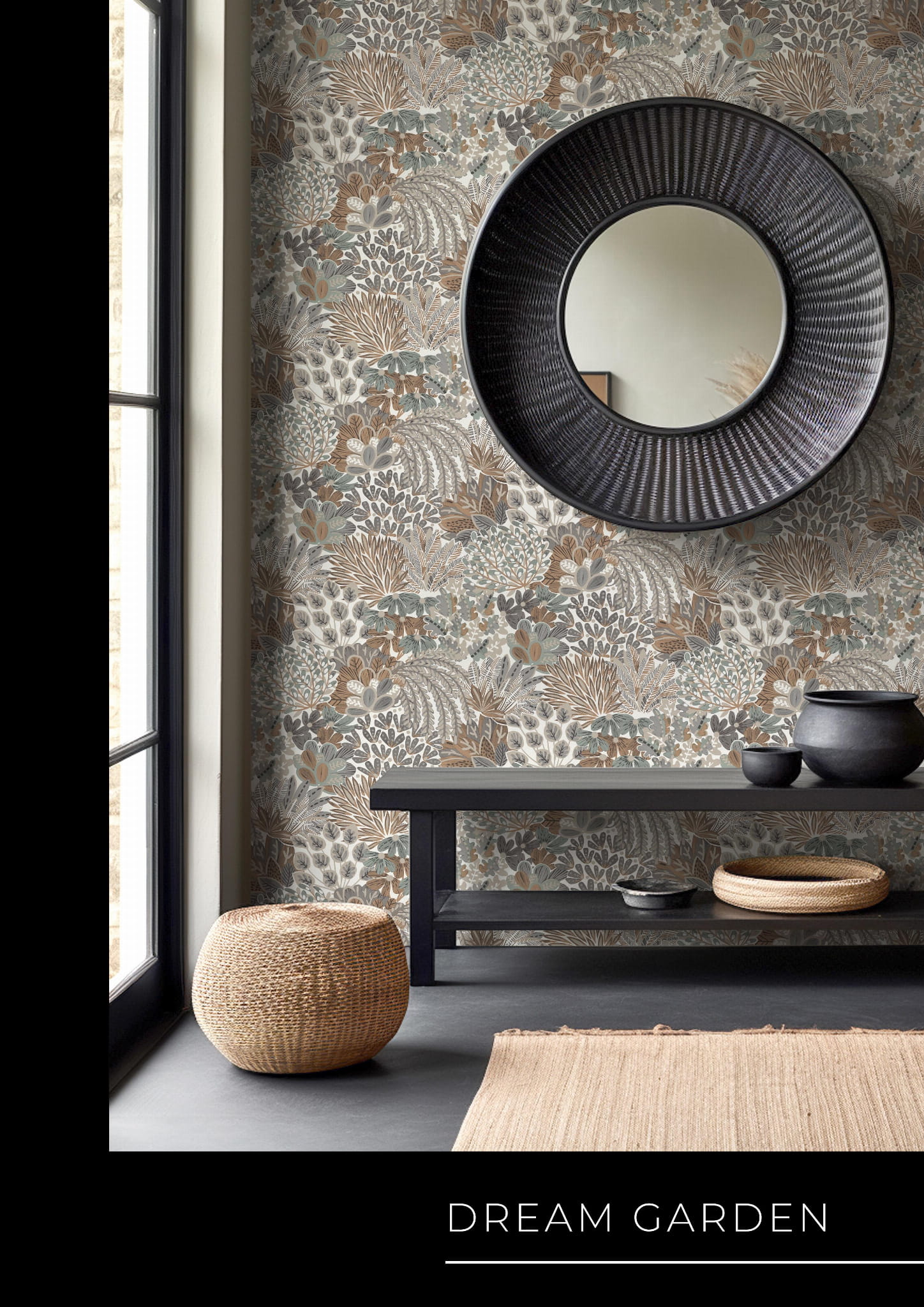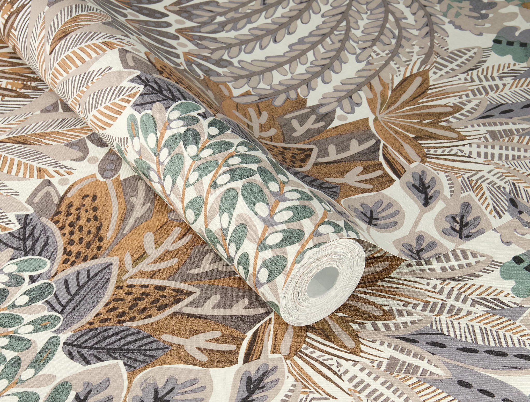 Prezentowana tapeta ścienna zachwyca bogatym roślinnym wzorem, który przyciąga wzrok i jednocześnie tworzy przytulną atmosferę. Przyciąga wzrok swoim bogatym, botanicznym wzorem inspirowanym bujnymi, ogrodowymi roślinami. Na białym tle prezentują się różnorodne kształty liści i kwiatów w stonowanych odcieniach zieleni, szarości, brązu i beżu. Całość utrzymana jest w naturalnej palecie kolorów, dzięki czemu wnętrze zyskuje elegancki, a zarazem przytulny charakter. Delikatna struktura tapety imituje płótno o matowym wykończeniu, co wzmacnia naturalny efekt kompozycji. To idealne rozwiązanie dla tych, którzy pragną wprowadzić do swojego wnętrza odrobinę natury, zachowując przy tym elegancję i styl.