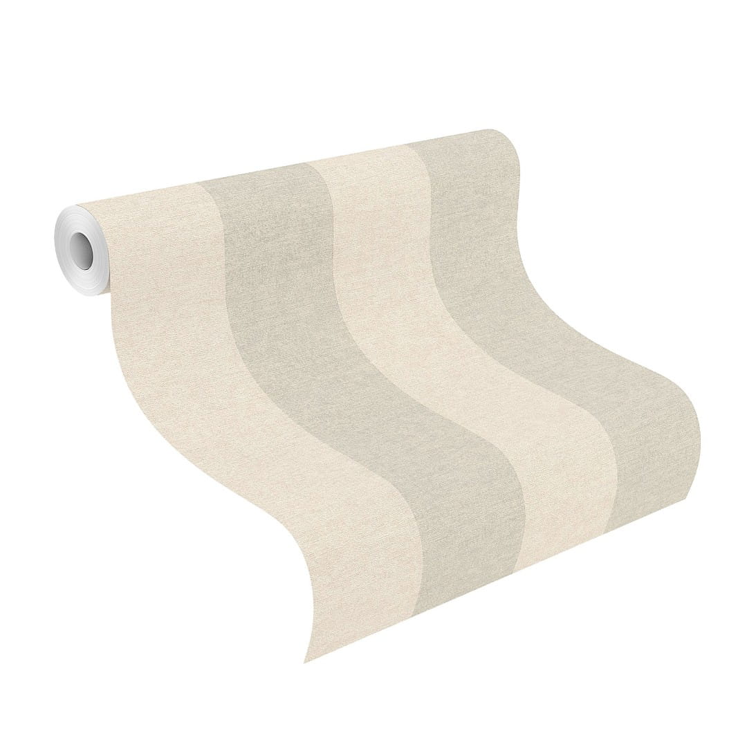 Prezentowana tapeta ścienna ze wzorem pasów to wyraz klasycznej elegancji i ponadczasowego stylu. Jej delikatna kolorystyka, łącząca jasny, piaskowy beż z bladą, szarawą zielenią wpadającą w tonacje szałwii tworzy harmonijną kompozycję, która wprowadzi do wnętrza przytulny i elegancki styl. Wyczuwalnie szorstka, matowa struktura tapety przywołuje na myśl tynk ścienny z delikatnym efektem przecierki, co nadaje całości naturalnego charakteru.
