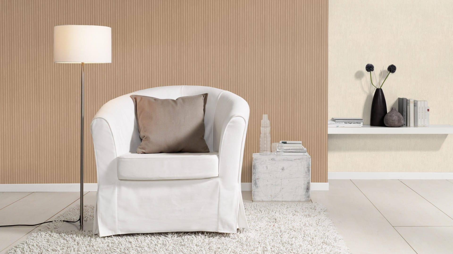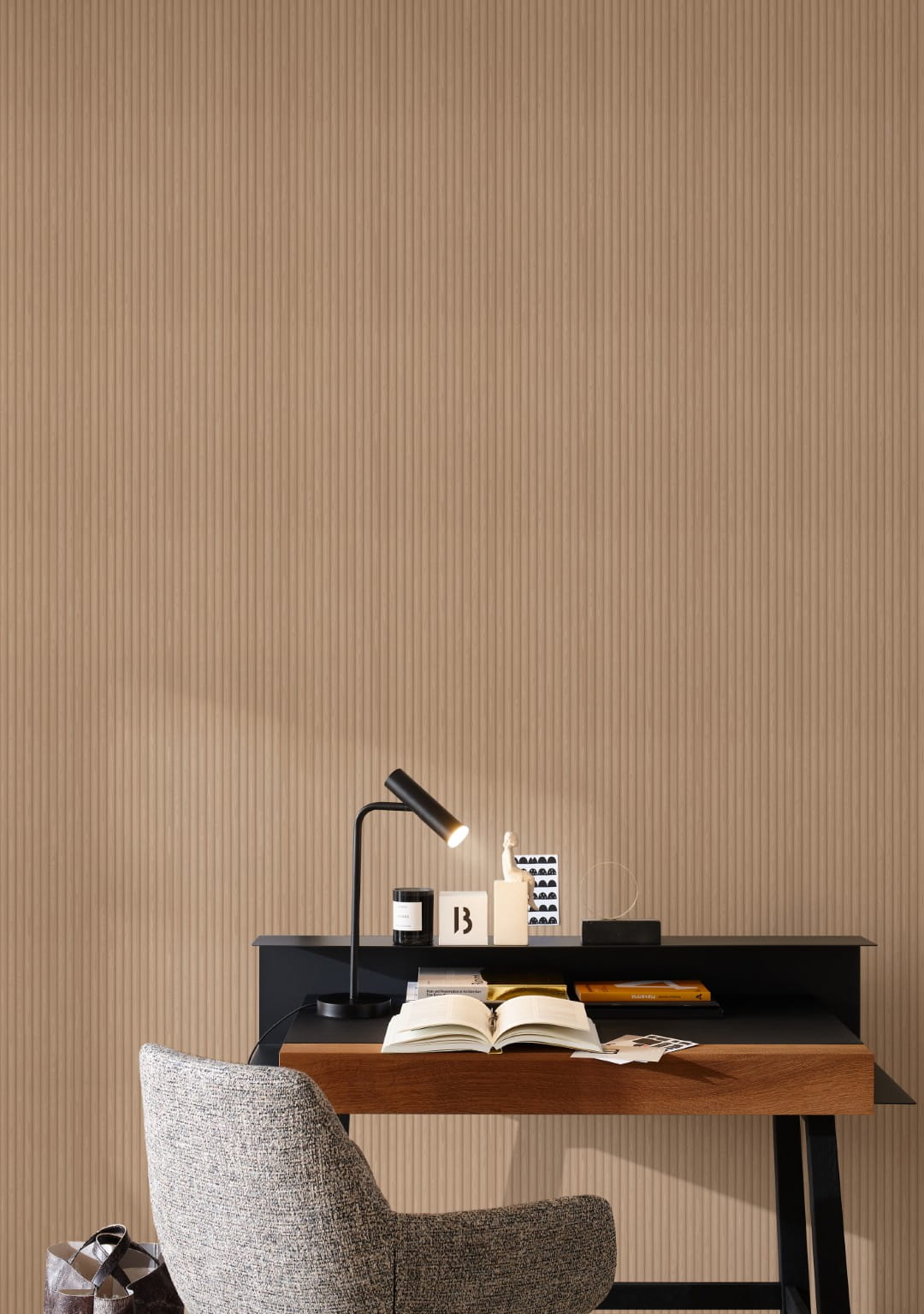 Neutralna kolorystyka i uniwersalny design sprawiają, że tapeta pasuje do każdego pomieszczenia i świetnie wpisuje się w różnorodne style aranżacyjne – od nowoczesnego minimalizmu, przez skandynawską prostotę, aż po rustykalne wnętrza inspirowane naturą. Dzięki pionowemu układowi wzoru tapeta optycznie wydłuża ściany, sprawiając wrażenie większej przestrzeni. Świetnie prezentuje się zarówno na całych ścianach, jak i jako dekoracyjny akcent. Jej wszechstronność sprawia, że może być stosowana zarówno w domach, jak i w przestrzeniach biurowych, czy komercyjnych.