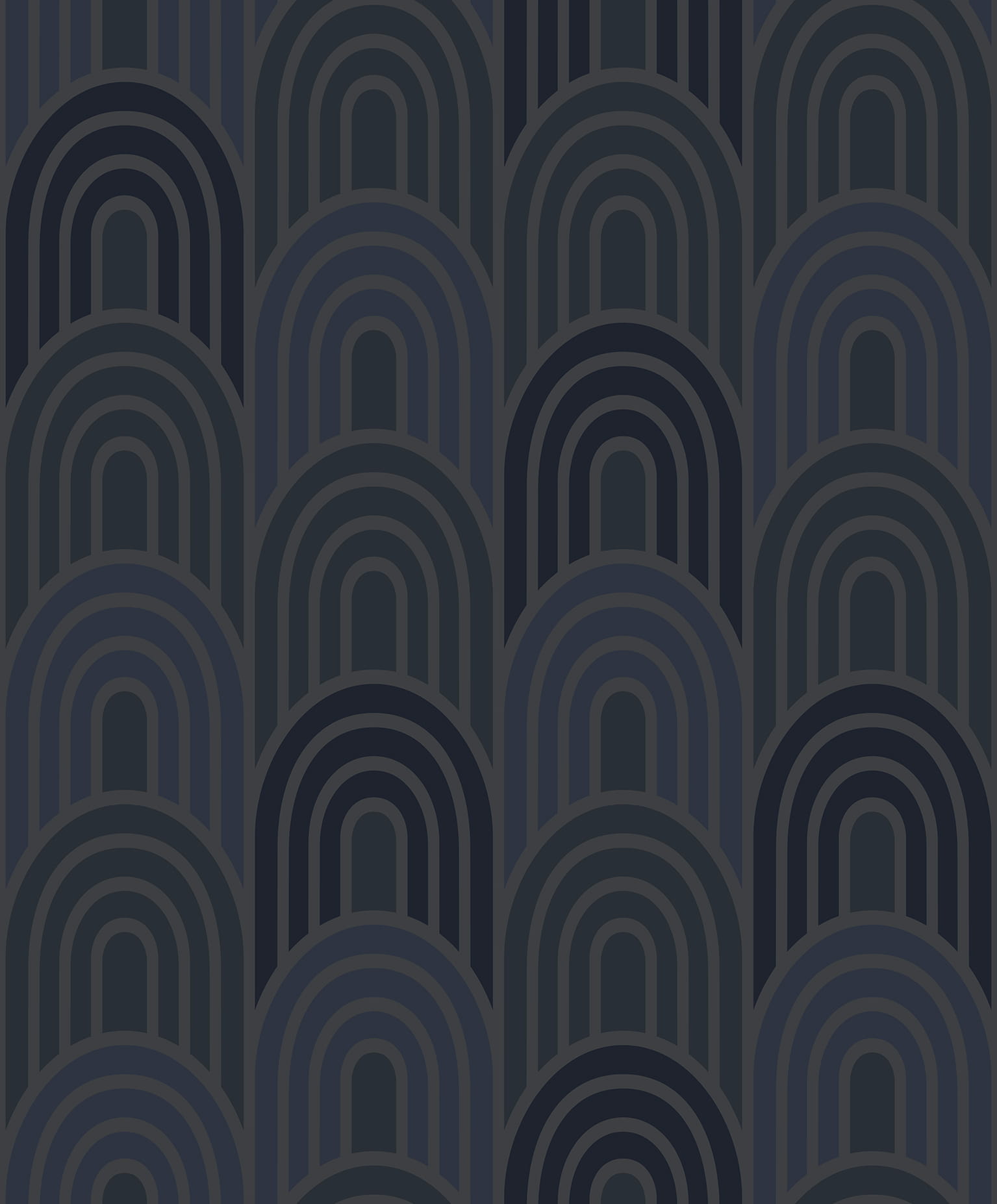 Tapeta w stylu Art-Deco z geometrycznym motywem łuków. Kompozycja utrzymana w odcieniach ciemnego granatu, zestawionych z ciemną szarością. Tapeta wyglądem przypomina tkaninę, stylizowaną na beton architektoniczny, jej wykończenie jest matowe. Faktura powierzchni jest niemal idealnie gładka, pod palcami można wyczuć lekko ciemnoszare elementy wzoru. Tapeta świetnie sprawdzi się jako dekoracja jednej ściany, tworząc modne zestawienie z tapetami, które prezentujemy poniżej. W wyjątkowy sposób odmieni styl salonu, jadalni, sypialni, pokoju młodzieżowego, przedpokoju, czy też biura. Świetnie sprawdzi się przy aranżacji wnętrza nowoczesnego, minimalistycznego, czy na przykład urządzonego w stylu retro. Projekt „ArtDeco”, pochodzący z ekskluzywnej kolekcji „Boheme”, producenta Decoprint jest dostępny w trzech wersjach kolorystycznych. Tapeta winylowa na podłożu flizelinowym, zmywalna w dobrym stopniu. W rzeczywistości kolorystyka tapety jest nieco żywsza a kolory bardziej nasycone, niż przedstawia zdjęcie.