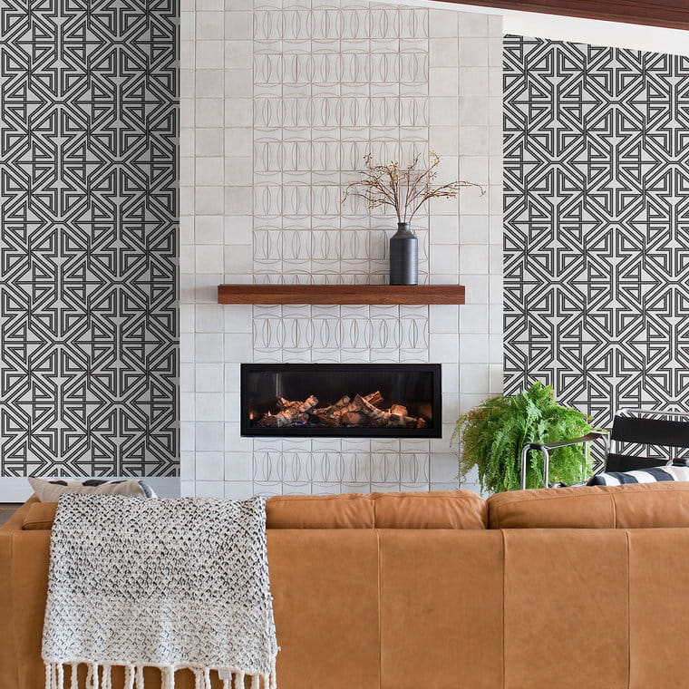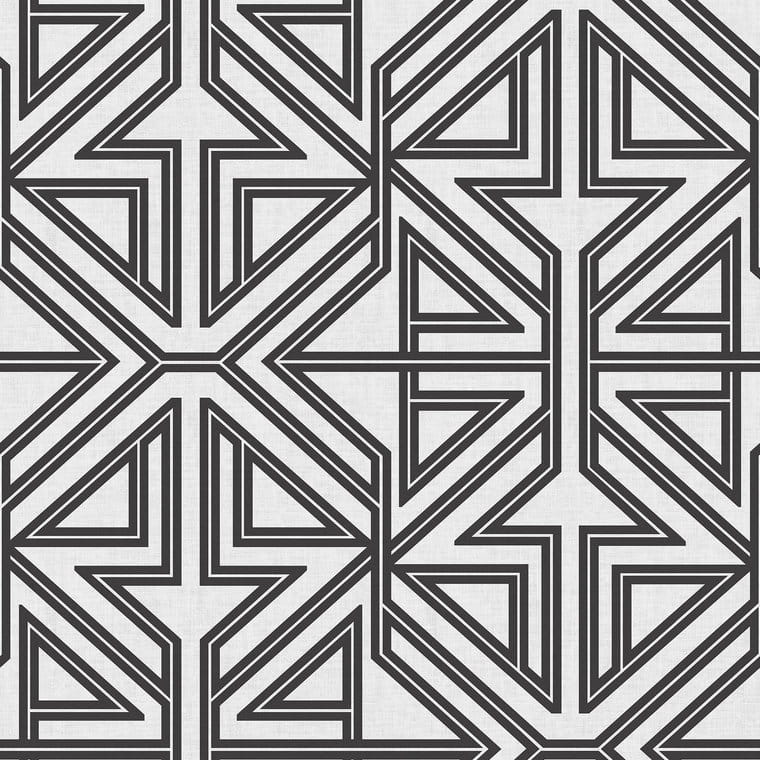 Powyższa tapeta z motywem geometrycznym gwarantuje modny wystrój salonu, sypialni, jadalni, przedpokoju a także młodzieżowego wnętrza. Czarny, graficzny deseń tworzący mozaikę wypełnia tło w odcieniu bieli złamanej kroplą szarości. Struktura tapety jest gładka a wykończenie matowe. Projekt dostępny w wielu wersjach kolorystycznych, prezentowanych poniżej. Tapeta pochodzi z kolekcji „Scott Living II By Drew & Jonathan”, producenta Fine Decor. Jest tapetą winylową na podłożu flizelinowym, zmywalną w dobrym stopniu.