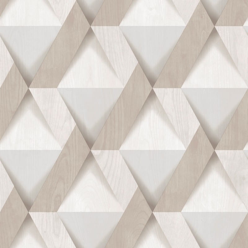 Tapeta winylowa na flizelinie z kolekcji "Nomade", producenta Ugepa. Oryginalne połączenie trójwymiarowego wzoru geometrycznego z efektem drewna. Kompozycja utrzymana w delikatnych odcieniach szarości, szaro-beżu i brązu. Struktura tapety jest minimalnie tłoczona, z widocznymi poziomymi kreseczkami, które odzwierciedlają fakturę drewna, wyczuwalnie śliska w dotyku. Wykończenie tapety na pierwszy rzut oka zdaje się być matowe, jednak można dostrzec, że tapeta delikatnie odbija światło. Doskonale nadaje się do nowoczesnego salonu, jadalni, sypialni czy też pokoju młodzieżowego. Stanowi świetną bazę dla mebli i dodatków wykonanych z naturalnych materiałów. Tapeta dostępna również w rozmiarze 10,05m x 1,06m - M69197D, co jest dobrym sposobem na szybsze tapetowanie ścian.
