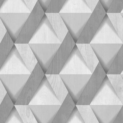 Tapeta winylowa na flizelinie z kolekcji "Nomade", producenta Ugepa. Oryginalne połączenie trójwymiarowego wzoru geometrycznego z efektem drewna. Kompozycja utrzymana w delikatnych odcieniach szarości. Struktura tapety jest minimalnie tłoczona, z widocznymi poziomymi kreseczkami, które odzwierciedlają fakturę drewna, wyczuwalnie śliska w dotyku. Wykończenie tapety na pierwszy rzut oka zdaje się być matowe, jednak można dostrzec, że tapeta delikatnie odbija światło a najciemniejsze z elementów mają metaliczny, srebrny połysk. Tapeta dostępna również w rozmiarze: 10,05 x 1,06 m - M69119D, co jest dobrym sposobem na szybsze tapetowanie ścian.