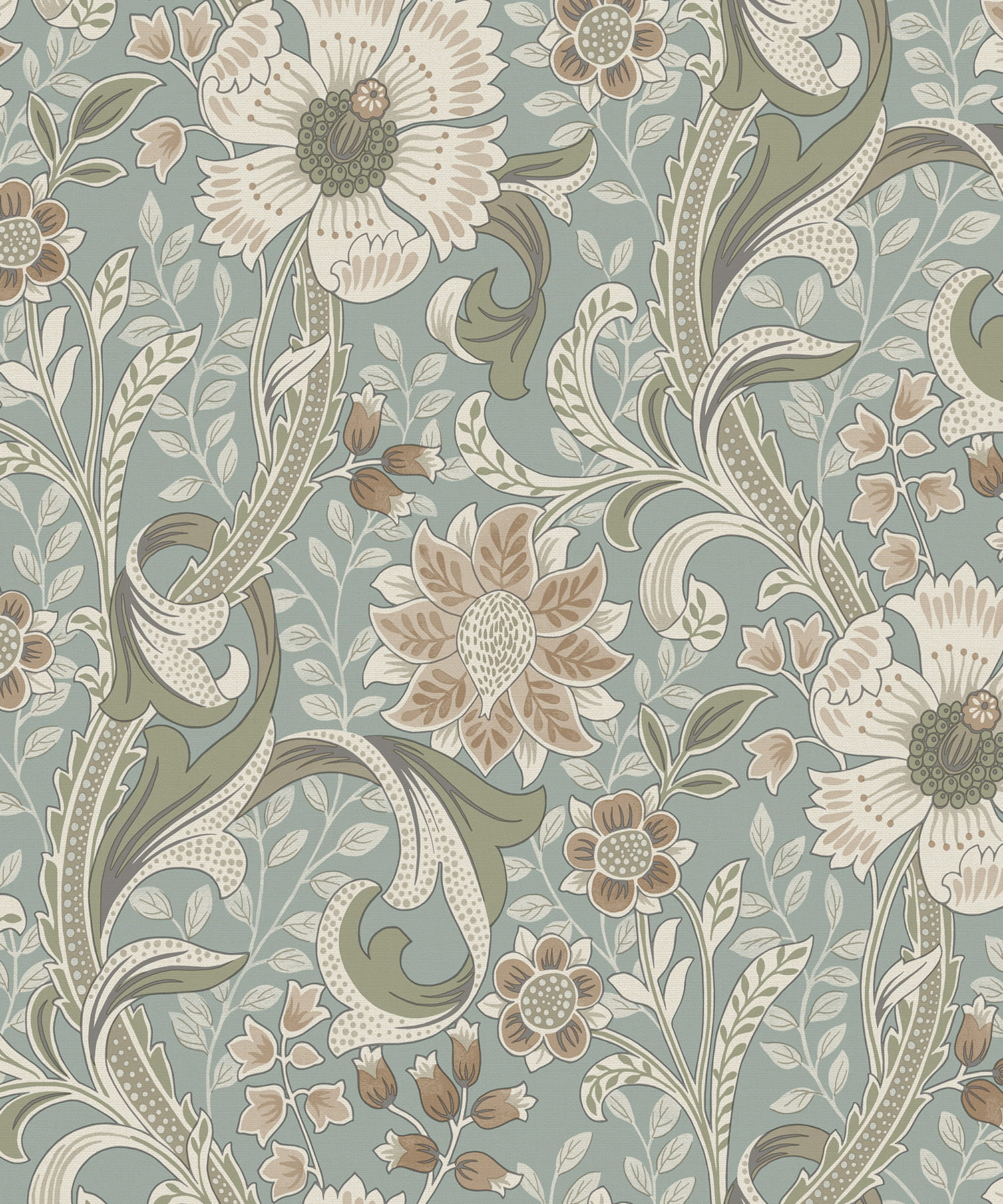 Prezentowana tapeta ścienna ma elegancki, florystyczny wzór inspirowany stylem vintage. Precyzyjny, bogaty w detale deseń dużych kwiatów i wijących się liści przywołuje na myśl klasyczny styl angielskich wnętrz. Kolorystyka tapety łączy spokojne tonacje zieleni, z brązami i kolorem kremowym. Powierzchnia tapety jest gładka ale fakturą przypomina tkaninę, wykończenie powierzchni jest matowe. Swym stylem tapeta doskonale nadaje się do wnętrz urządzonych w stylu klasycznym, vintage, romantycznym ale również i nowoczesnym. Idealnie pasuje do salonu, sypialni, przedpokoju, czy gabinetu. Sprawi, że każde wnętrze nabierze klasy i wyjątkowo przytulnego charakteru. Jest idealnym wyborem dla osób, które kochają elegancję, naturalne motywy i klasyczne wnętrza o wyrafinowanym stylu. Warto zestawić ją z drewnianymi meblami w naturalnych odcieniach, dodatkami w stylu retro i tkaninami w stonowanych barwach, aby stworzyć harmonijną aranżację. Tapeta pochodzi z ekskluzywnej kolekcji "Perfect Harmony", belgijskiego producenta Grandeco. Tapeta flizelinowa, ekologiczna - bez dodatku PCV, zmywalna.