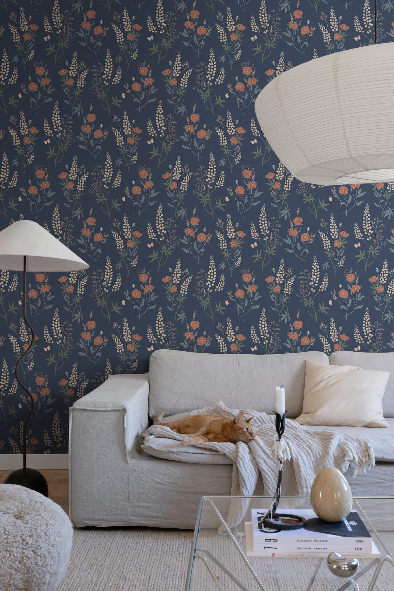 Ekskluzywna tapeta ścienna z kolekcji "Villa Dallarö II", szwedzkiego producenta Sandberg. Projekt o nazwie "Emma", zaprojektowany przez Sarę Bergqvist to kwitnąca, letnia łąka z kołyszącymi się łubinami, które mieszają się ze słodkimi makami i przyjaznymi słomkami. Przytulny charakter tego delikatnego wzoru roślinnego podkreśla spokojna kolorystyka tapety, która łączy tonacje zieleni, czerwień, beż i biel z ciemnym, niebieskim tłem. Wykończenie tapety jest matowe a jej struktura niemal idealnie gładka. Pod palcami można nieco wyczuć elementy wzoru, które zostały delikatnie wytłoczone. Idealny przepis na stworzenie ciepłej i klimatycznej aranżacji salonu, jadalni, sypialni, czy też przedpokoju. Projekt idealnie pasuje do sielskich, rustykalnych aranżacji. Świetnie odnajdzie się też w nowoczesnych wnętrzach. Tapeta z powodzeniem może być zastosowana jako samodzielna dekoracja wszystkich ścian w pomieszczeniu, może też tworzyć stylowe zestawienie z innymi tapetami z kolekcji, na przykład tymi, które prezentujemy poniżej. Tapeta o numerze S10185 jest tapetą flizelinową, ekologiczną, zmywalną w dobrym stopniu, dzięki czemu może być bardzo delikatnie przecierana ściereczką.