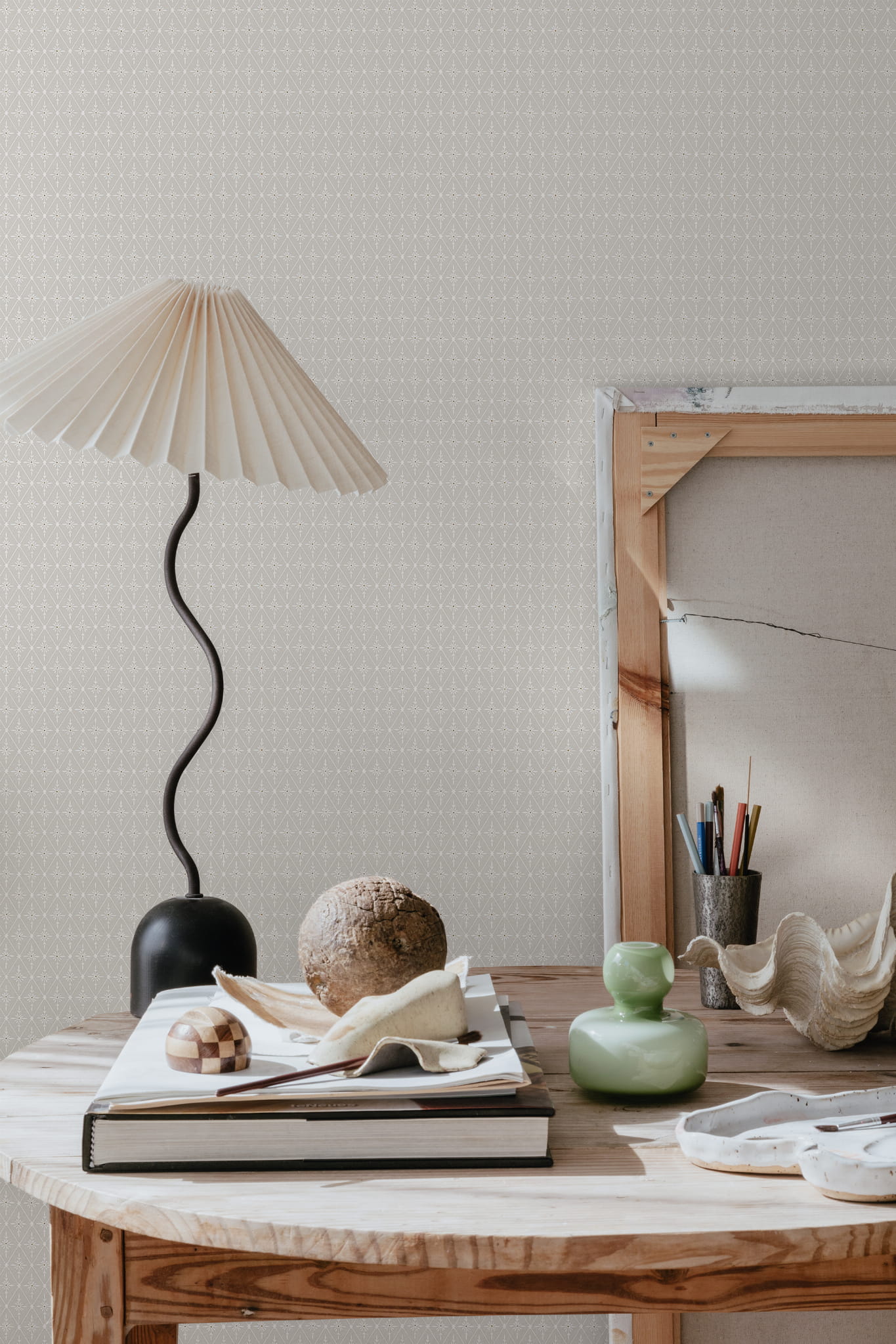 Ekskluzywna tapeta ścienna z kolekcji "Villa Dallarö II", szwedzkiego producenta Sandberg. Projekt "Einar" to delikatna, wzorzysta tapeta w małe romby, które wypełniają drobniutkie, kwiatowe elementy. Kompozycja utrzymana w pastelowej kolorystyce, która wzmacnia jej przytulny charakter. Dominuje jasny, szaro-beżowy, piaskowy odcień, uzupełniony o biel i akcenty połyskującego złota, który w postaci drobniutkich kropek wypełnia środek każdego kwiatka. Struktura tapety jest gładka a wykończenie, z wyjątkiem złotych kropek jest matowe. Idealny wybór do stworzenia przyjaznej i harmonijnej atmosfery w domu i zmianę wystroju salonu, jadalni, sypialni, przedpokoju czy też pokoju młodzieżowego a nawet i dziecięcego. Tapeta świetnie skomponuje się z rustykalnym wystrojem, jak i nowoczesną aranżacją. Z powodzeniem może być zastosowana jako samodzielna dekoracja całego pomieszczenia, jak i tworzyć modne zestawienie z innymi tapetami z kolekcji, na przykład tymi, które prezentujemy poniżej. Tapeta o numerze S10196 jest tapetą flizelinową, ekologiczną, zmywalną w dobrym stopniu, dzięki czemu może być bardzo delikatnie przecierana ściereczką.