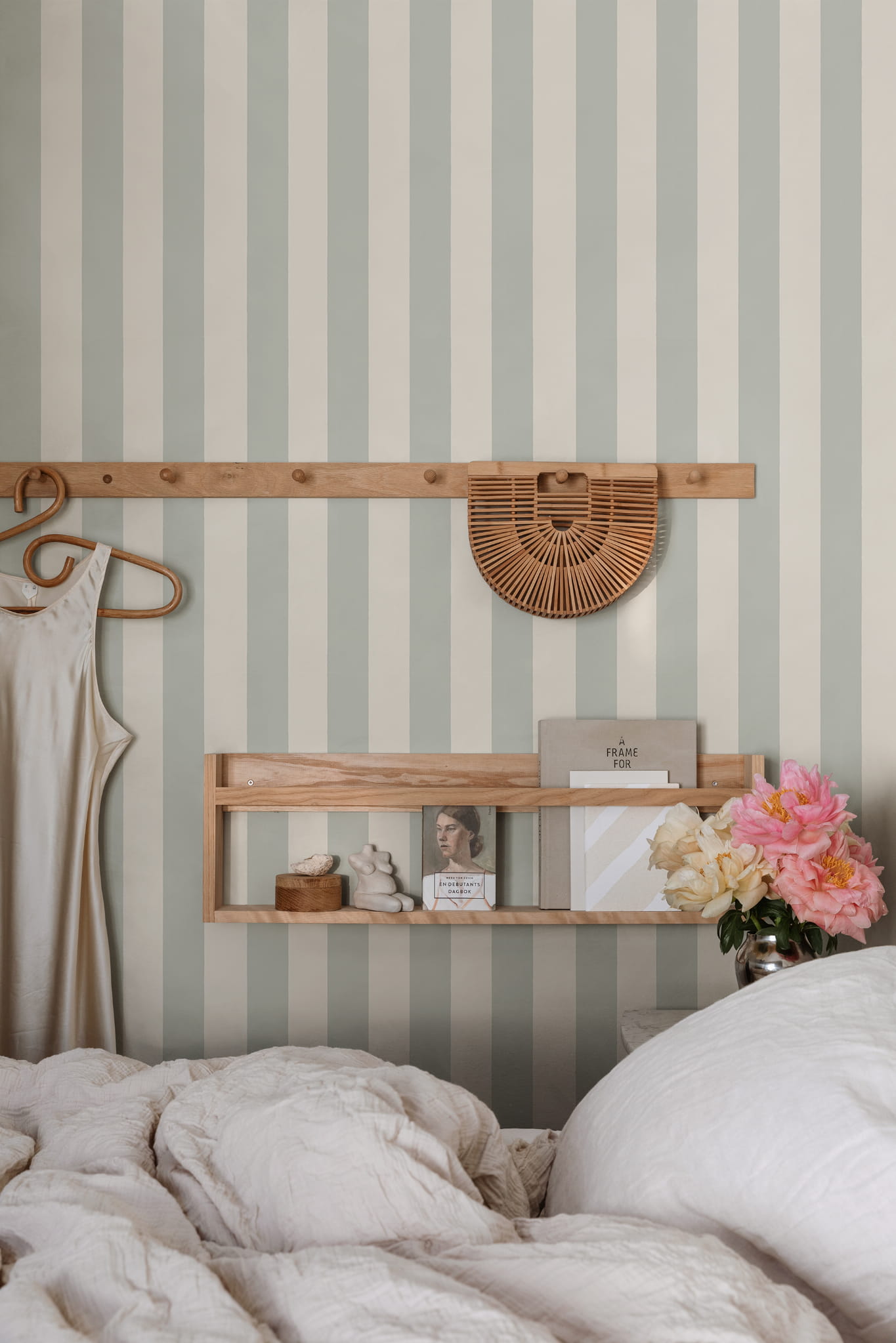 Ekskluzywna tapeta ścienna z kolekcji "Villa Dallarö II", szwedzkiego producenta Sandberg. Projekt "Sam" to klasyczny wzór pasów, współgrający niemal z każdym stylem aranżacyjnym i nadający się do każdego pomieszczenia. Wyróżnia się pastelową kolorystyką, która łączy chłodną, szałwiową zieleń ze złamaną bielą. Gwarantuje stylową i elegancką aranżację o modnym i przytulnym charakterze. Wykończenie tapety wydaje się być matowe, jednak zielone pasy bardzo delikatnie odbijają mocniejsze światło, Struktura tapety jest idealnie gładka. Tapeta z powodzeniem sprawdzi się jako samodzielna dekoracja całego pomieszczenia, jak i w stylowym zestawieniu z innymi tapetami z kolekcji. Tapeta S10199 jest tapetą flizelinową, ekologiczną, zmywalną w dobrym stopniu, dzięki czemu może być bardzo delikatnie przecierana ściereczką.