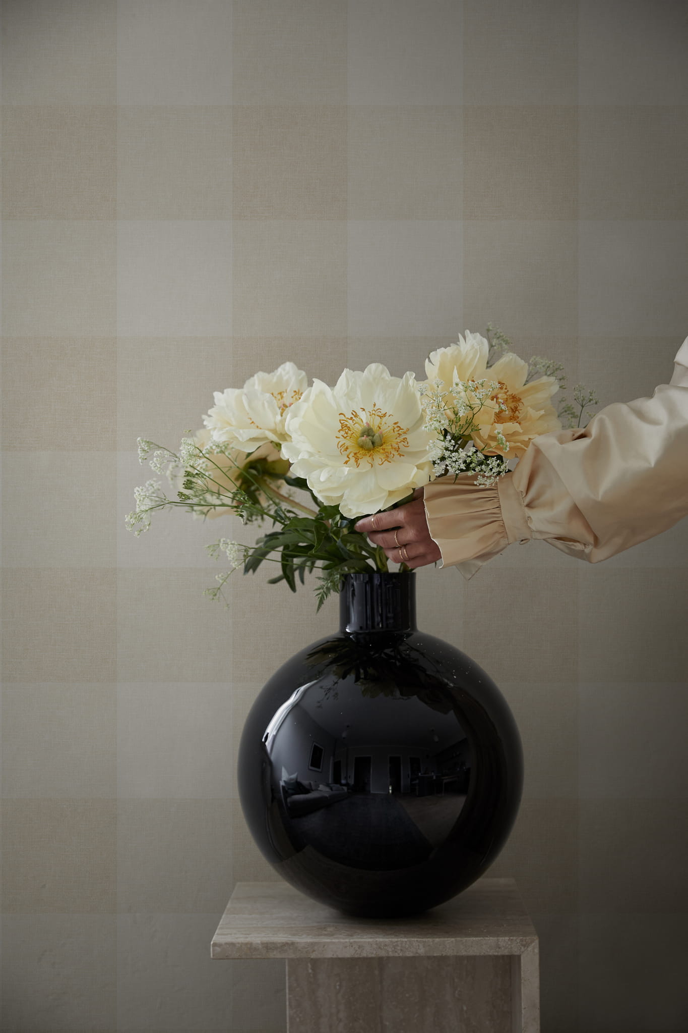 Ekskluzywna tapeta ścienna z kolekcji "Villa Dallarö II", szwedzkiego producenta Sandberg. Projekt "Lykke" to ponadczasowy wzór kraty o tekstylnym, płóciennym wyglądzie, która pasuje do każdego pomieszczenia. Pastelowa kolorystyka, która łączy delikatne tonacje ciepłego, owsianego beżu gwarantuje przytulną i harmonijną atmosferę w pomieszczeniu. Struktura tapety jest idealnie gładka a wykończenie matowe. Tapeta doskonale wpisuje się w różne style aranżacji wnętrz, co jest dużym walorem dekoracyjnym. Pasuje zarówno do klasycznych, jak i nowoczesnych aranżacji. Świetnie współgra z rustykalnym i skandynawskim stylem, pięknie podkreśli też charakter wnętrza urządzonego w angielskim stylu. Z powodzeniem sprawdzi się jako samodzielna dekoracja wszystkich ścian w pomieszczeniu, może też tworzyć modne zestawienie z innymi tapetami z kolekcji, Tapeta S10214 jest tapetą flizelinową, ekologiczną, zmywalną w dobrym stopniu, dzięki czemu może być bardzo delikatnie przecierana ściereczką.