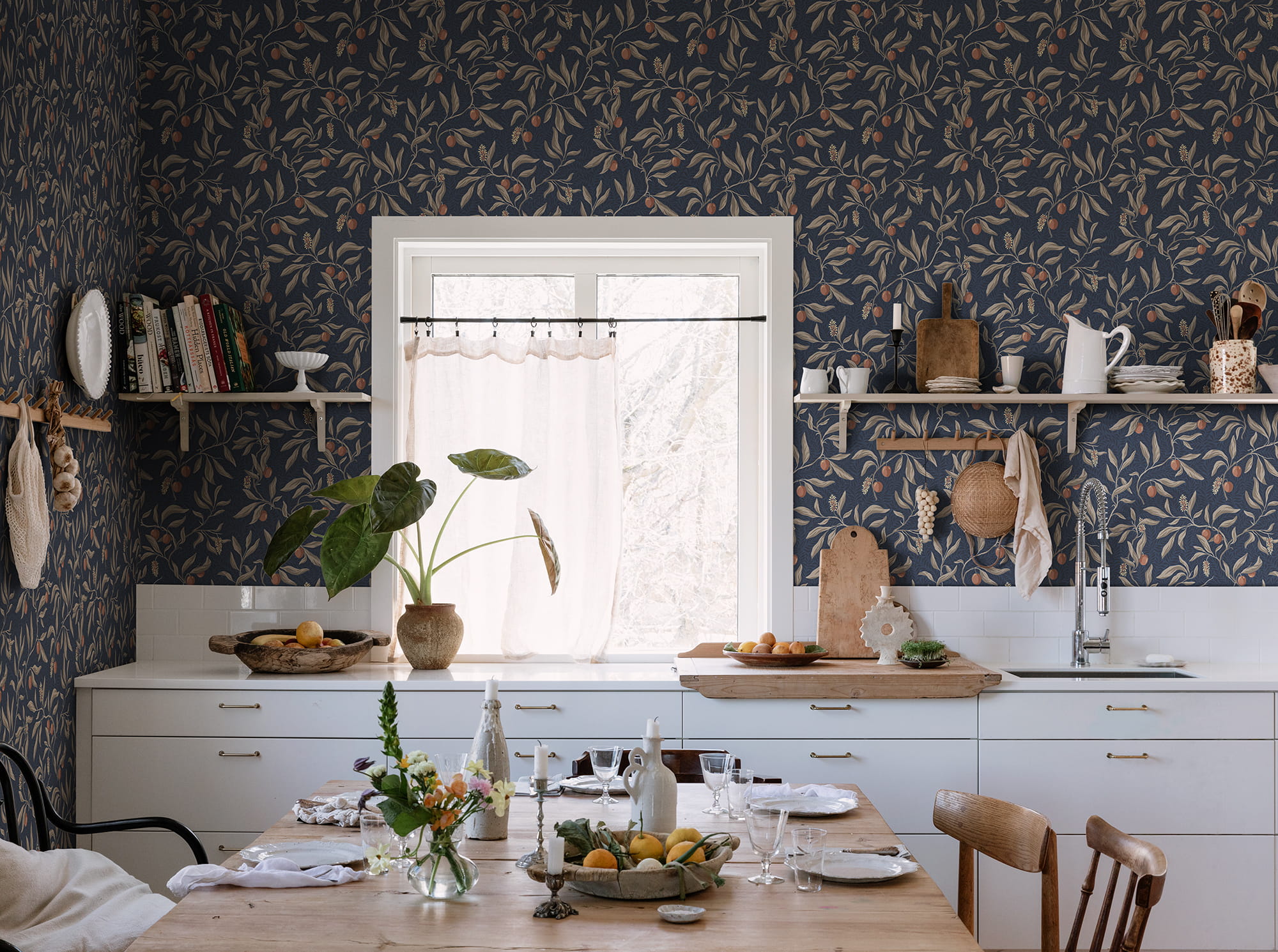 Ekskluzywna tapeta ścienna z kolekcji "Villa Dallarö II", szwedzkiego producenta Sandberg. Projekt "Vinnie", którego autorką jest Sara Bergqvist to piękne, malowane gałązki z owocami liczi. Na drugim tle można dostrzec może drobniutkich, delikatnych listków. Ponadczasowy wzór wykonany tradycyjną techniką druku, która nadaje tapecie teksturowaną powierzchnię i żywy charakter. Kompozycję charakteryzuje delikatna i spokojna kolorystyka, która łączy odcienie beżu i brązu z ciemnymi tonacjami niebieskiego. Wykończenie tapety jest matowe a jej struktura bardzo delikatnie tłoczona. Pod palcami można nieco wyczuć niektóre elementy wzoru. Tapeta świetnie nadaje się, zarówno do nowoczesnych, jak i klasycznie urządzonych wnętrz. Szczególnie pięknie będzie współgrać z ciepłym, rustykalnym wystrojem. W wyjątkowy sposób odmieni styl salonu, jadalni, sypialni, przedpokoju, biura, czy też młodzieżowego a nawet i dziecięcego wnętrza. Tapeta powodzeniem może stanowić samodzielną dekorację wszystkich ścian w pomieszczeniu, jak i tworzyć modne zestawienie z innymi tapetami z kolekcji, na przykład tymi, które prezentujemy poniżej. Tapeta o numerze S10224 jest tapetą flizelinową, ekologiczną, zmywalną w dobrym stopniu, dzięki czemu może być bardzo delikatnie przecierana ściereczką.