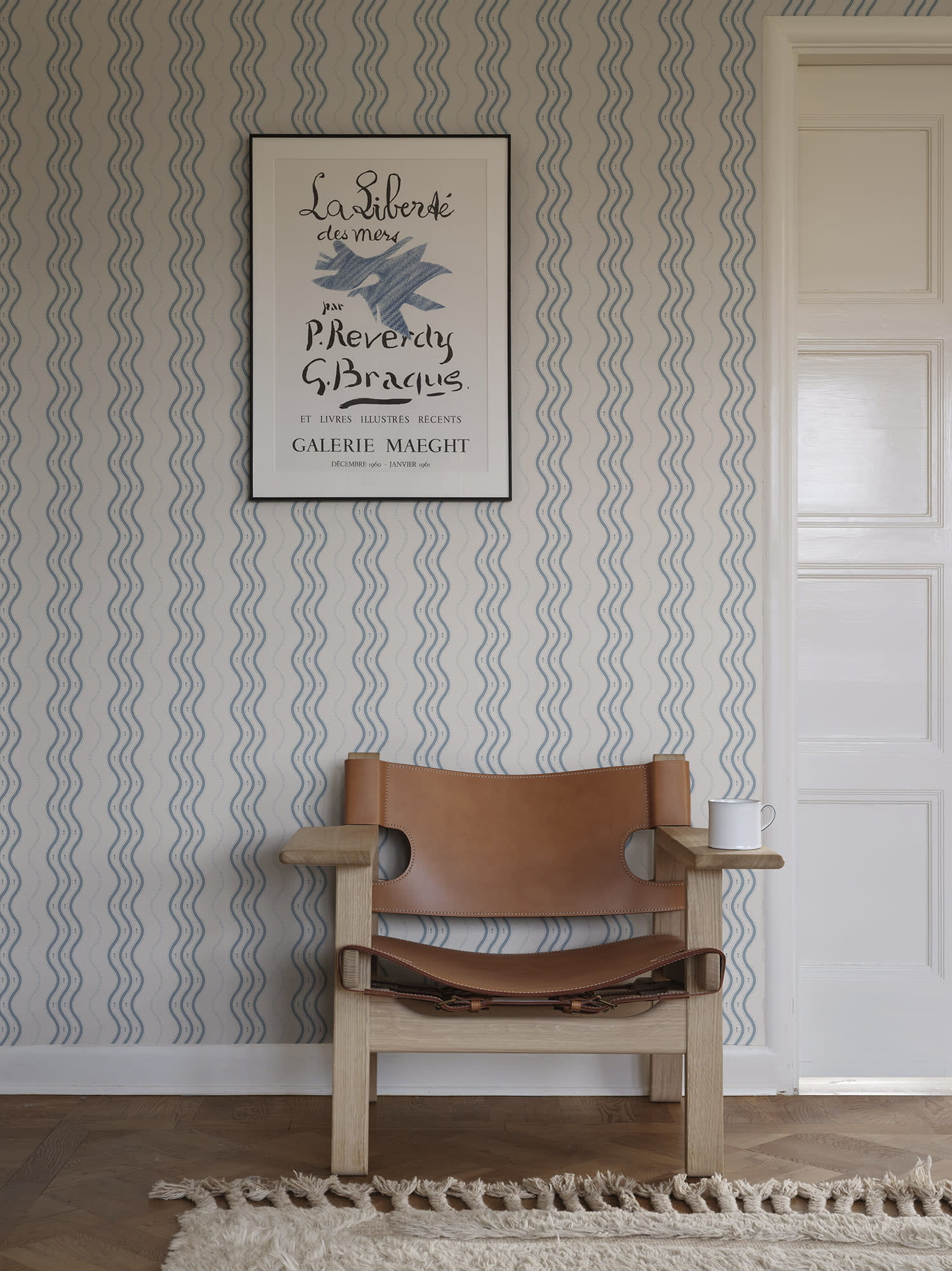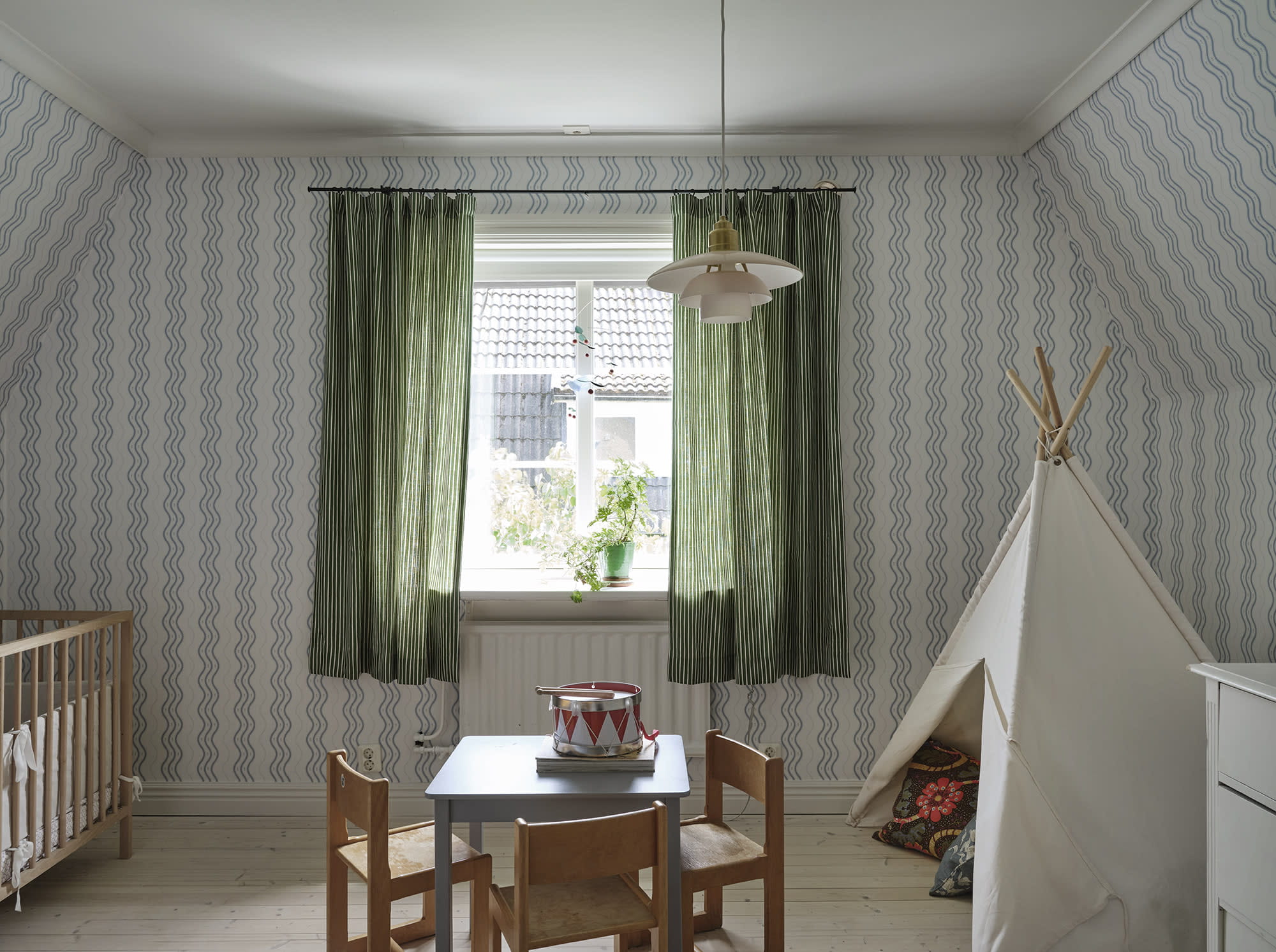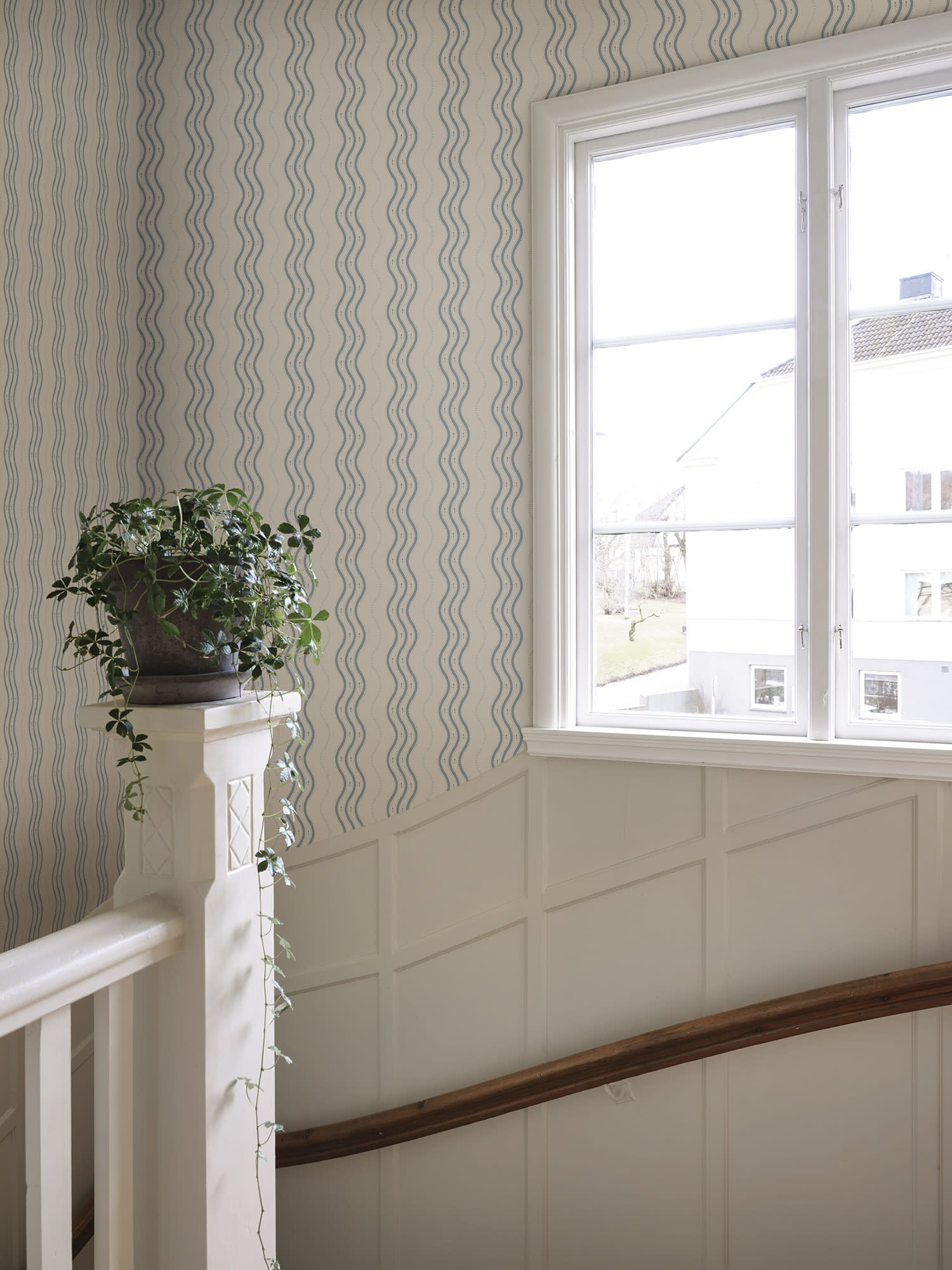 Poszukując modnej i oryginalnej tapety ściennej, warto przyjrzeć się bliżej powyższemu projektowi o nazwie "Ben", który pochodzi z ekskluzywnej kolekcji "Tidlosa", i który powstał przy współpracy z Johanną Bredford i Sanderg. Wyróżnia go oryginalny deseń pasków o odważnym i nieco humorystycznym wyglądzie, który będzie się niezwykle stylowo prezentować na ścianie. Wzór jasnoniebieskich fal i kropek, okraszonych małymi kwiatami krokusa wypełnia delikatne, białe tło. Dekoracyjne walory kompozycji podkreśla matowe wykończenie tapety i jej idealnie gładka struktura. Efektowny i zarazem przytulny motyw będzie doskonałym tłem dla nowoczesnej aranżacji wnętrza. Idealnie sprawdzi się jako dekoracja salonu, jadalni, sypialni, przedpokoju, biura a także młodzieżowego a nawet i dziecięcego wnętrza. Tapeta pięknie będzie prezentować się jako samodzielna dekoracja całego pomieszczenia, jak i tworząc modne zestawienie z innymi tapetami z kolekcji. Tapeta flizelinowa, odporna na zmywanie w stopniu dobrym, dzięki czemu jej powierzchnię można bardzo delikatnie przecierać ściereczką.