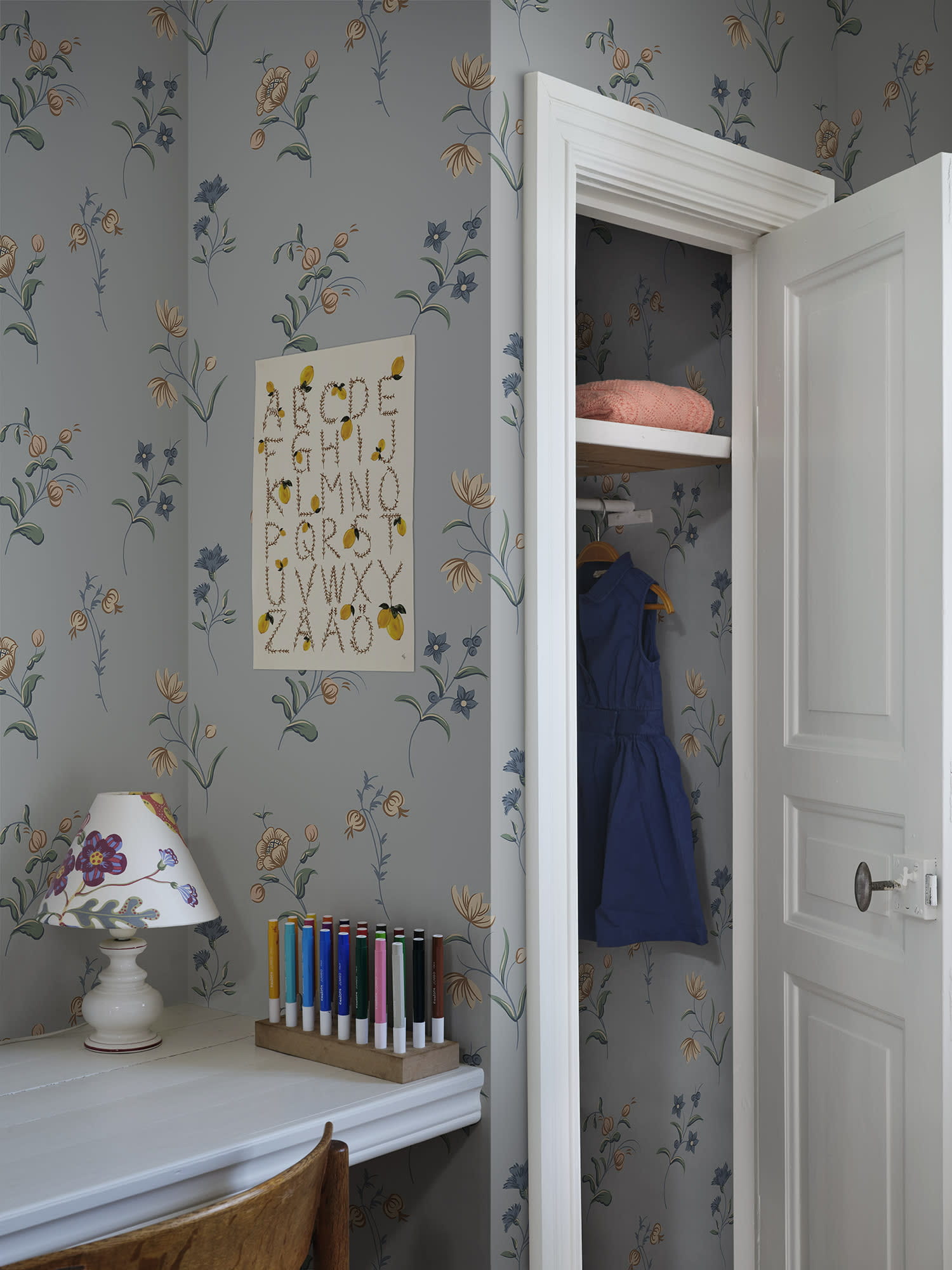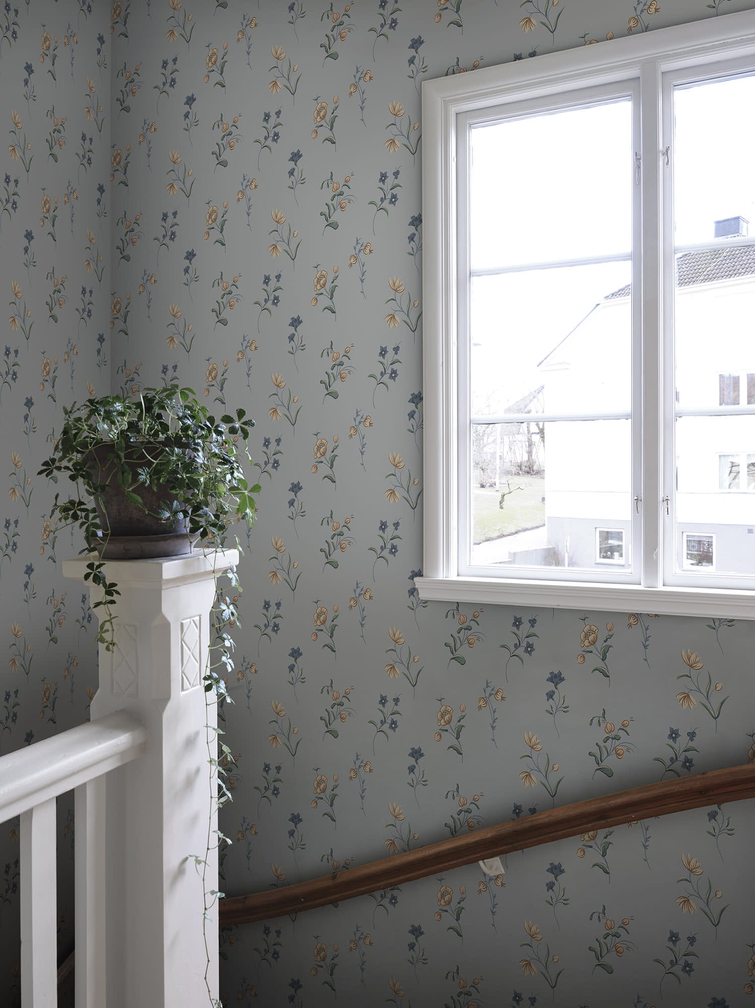 Ekskluzywna tapeta ścienna z kolekcji "Tidlosa", producenta oklein ściennych Sandberg. Projekt Hanna" to delikatny, kwiatowy motyw, który nawiązuje do szwedzkiej sztuki ludowej i malarstwa dekoracyjnego z XVIII wieku. Odważne pociągnięcia pędzla i harmonijna kolorystyka tworzą autentyczne wrażenie kwiatów malowanych na ścianie. Kompozycja w pastelowych odcieniach beżu, brązu, zieleni i ciemnoniebieskiego, wkomponowanych w delikatne, niebiesko-szare tło. Wykończenie tapety jest matowe a jej struktura niemal idealnie gładka w dotyku, pod palcami można wyczuć gdzieniegdzie wytłoczone elementy wzoru. Idealny przepis na stworzenie wyjątkowo przytulnej aranżacji salonu, jadalni, sypialni, przedpokoju, biura, pokoju młodzieżowego a nawet pokoju dziecięcego. Subtelny motyw będzie stylowym dopełnieniem zarówno klasycznej, jak i nowoczesnej aranżacji. Pięknie będzie prezentować się jako samodzielna dekoracja całego pomieszczenia, jak i w stylowym zestawieniu z innymi tapetami z kolekcji. Tapeta flizelinowa, charakteryzująca się dobrą odpornością na zmywanie, dzięki czemu jej powierzchnię można bardzo delikatnie przecierać ściereczką.
