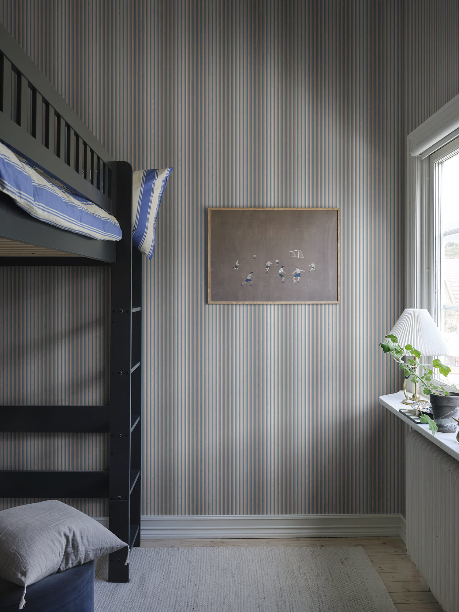Tapeta z kolekcji „Tidlosa”, producenta Sandberg to wyjątkowa propozycja dekoracyjna, która łączy prostotę klasycznego wzoru pasów z przytulnym, tekstylnym wyglądem tapety. Spokojna kolorystyka, która łączy kolor niebieski z koralowym różem i bielą sprawia, że całość prezentuje się wizualnie oryginalnie i bardzo stylowo. Niebieskie pasy zostały podkreślone delikatnym deseniem, układającym się w jodełkę. Estetyczne walory tapety podkreśla idealnie gładka struktura i matowe wykończenie. Projekt „Linn”, zaprojektowany przez designerkę Karolinę Kroon dla Sandberg jest dostępny w kilku wersjach kolorystycznych. Idealnie skomponuje się zarówno z klasycznym, jak i nowoczesnym wystrojem wnętrza. W wyjątkowy sposób odmieni styl każdego pomieszczenia, dodając mu zarówno elegancji, jak i przytulności. Pięknie udekoruje salon, jadalnię, sypialnię, przedpokój, gabinet, czy też pokój młodzieżowy a nawet dziecięcy. Tapeta może stanowić samodzielną dekorację całego pomieszczenia, jak i tworzyć modne zestawienie z innymi tapetami z kolekcji. Tapeta flizelinowa, charakteryzująca się dobrą odpornością na zmywanie, dzięki czemu jej powierzchnię można bardzo delikatnie przecierać ściereczką.